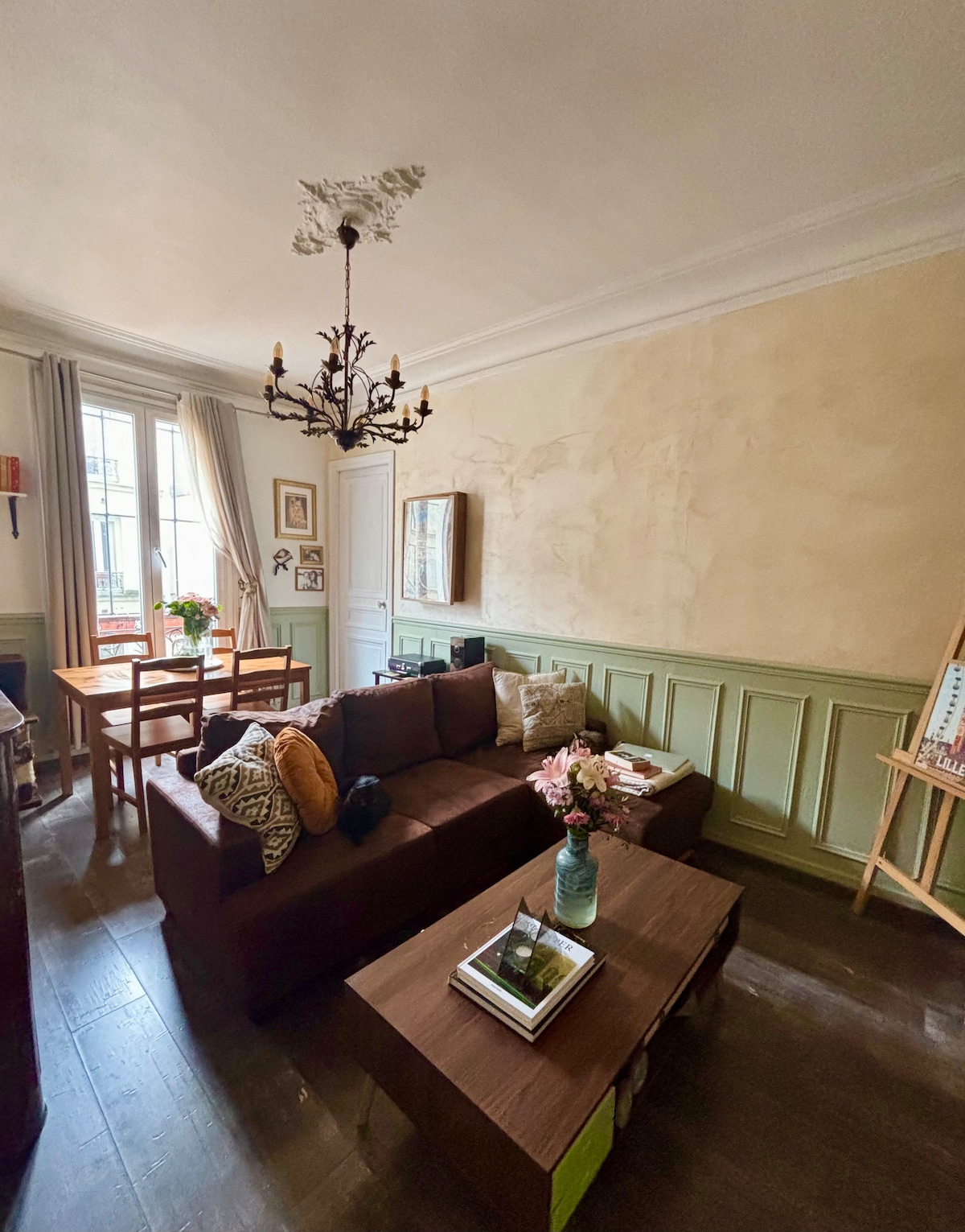 Estúdio muito calmo e luminoso de 24M² com 3 janelas com vista para o pátio. Um bairro animado e na moda. Muito perto do centro de Paris com muitos meios de transporte. Um quarto grande com um sofá que se transforma numa cama muito confortável. Uma kitchenette bem equipada com placa de indução, forno e frigorífico, louças e pequenos eletrodomésticos. Casa de banho independente com lavatório, chuveiro e sanita.