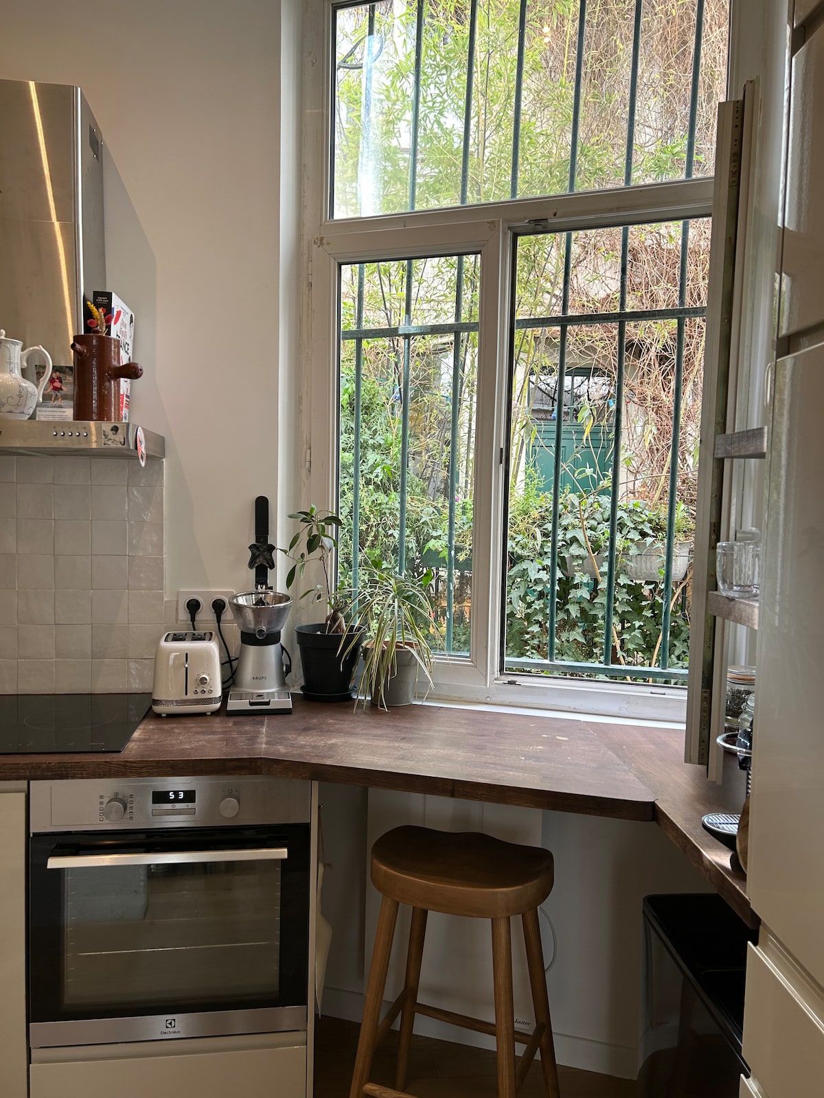 Bem-vindo ao nosso apartamento acolhedor, totalmente renovado por um arquiteto em 2019. É a nossa residência principal e teremos todo o gosto em recebê-lo! Possui uma espaçosa sala principal (sala de estar/cozinha/escritório) que se abre para um pátio privado de 20 m², uma casa de banho confortável, WC separado e um quarto acolhedor com roupa de cama nova e de alta qualidade. Totalmente equipado com uma banheira de hidromassagem e um projetor de alta qualidade, está tudo pronto para desfrutar de uma excelente estadia!