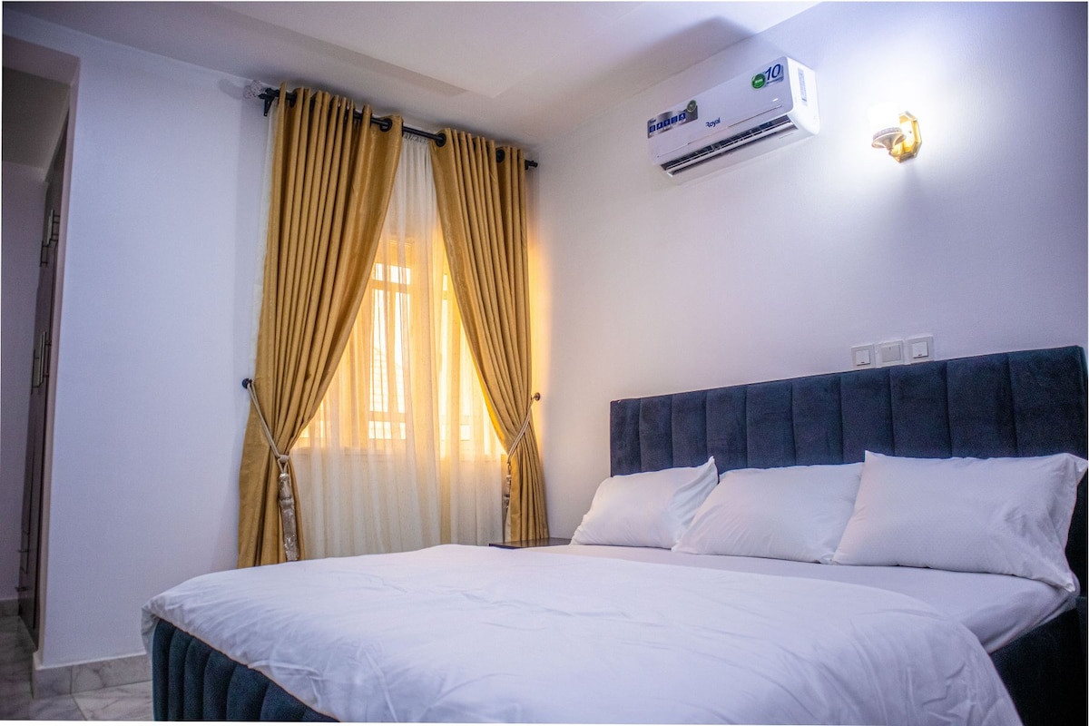 Experience total luxury, privacy and exceptional comfort in this Cozy 3bedroom apartment in Abuja. Nestled in a serene residential area. Designed for families, groups who value their own space. This home features three spacious bedrooms with our plushed double sized beds, each with its own private ensuite bathroom.... Enjoy 24/7 power with high speed Wi-FI and the luxury of having the entire property to yourself. With easy access to the heart of Abuja