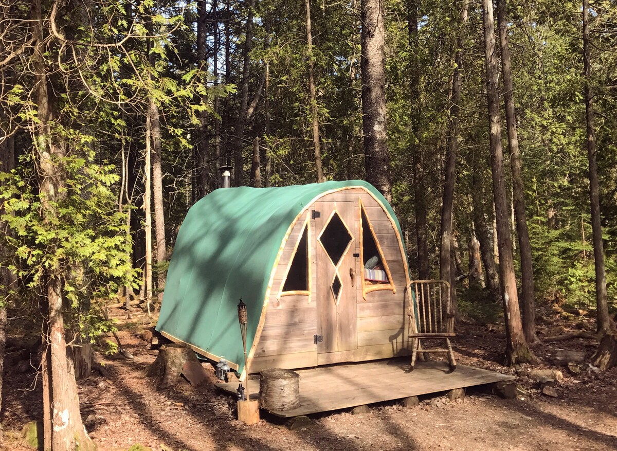 A nossa família está entusiasmada por partilhar a nossa cabana fora da rede *lite* consigo! Localizado na nossa quinta coletiva de artistas, este é o nosso lugar favorito na terra. É brilhante, bonito e cheio de cor. Estamos a 27 minutos do Parque Nacional Acadia e rodeados por praias locais verdadeiramente deslumbrantes. Oferecemos camas super confortáveis, cruzeiros de praia, um chuveiro ao ar livre, banheira de hidromassagem, luzes cintilantes, noites de verão cheias de vaga-lumes, maples brilhantes no outono e um fogão a lenha acolhedor no inverno.