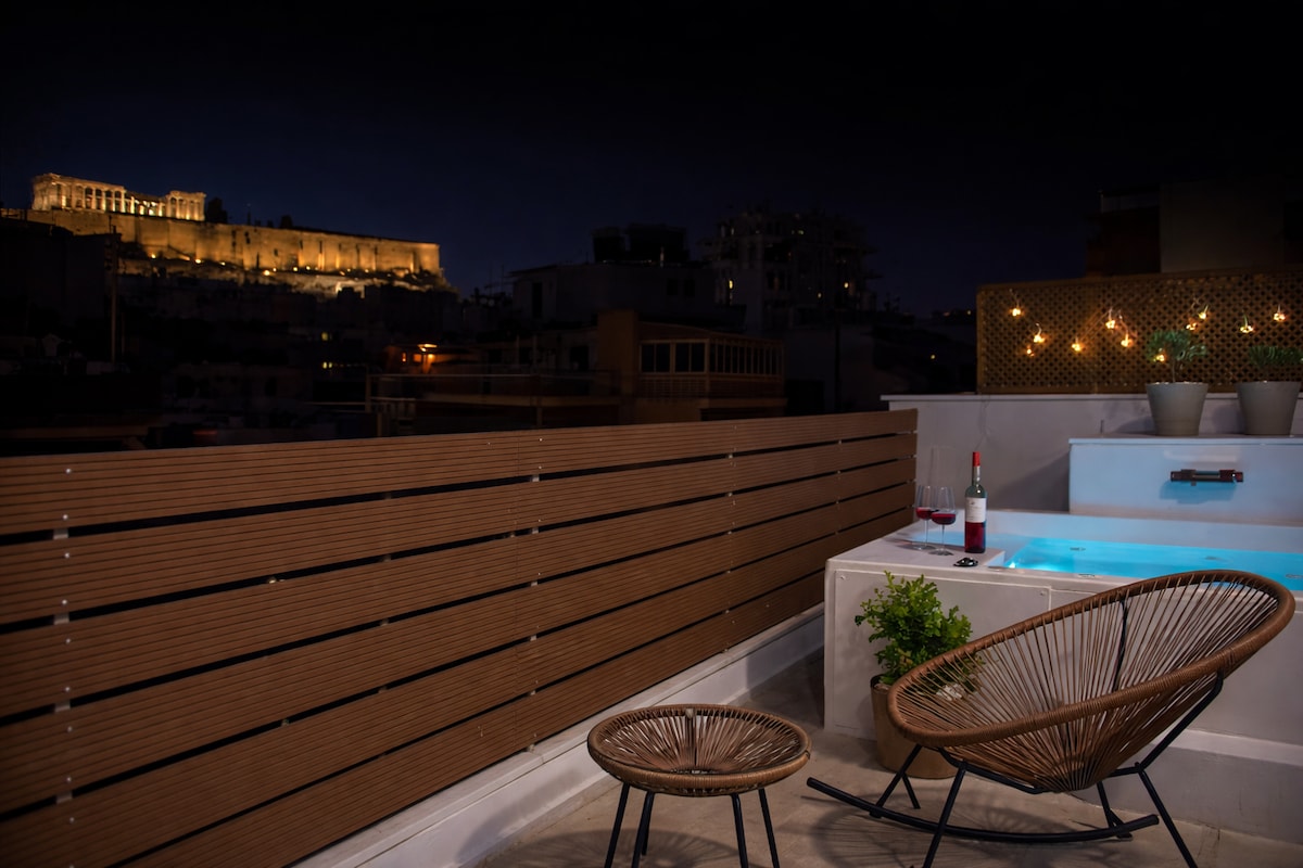 Loft ateniense • Banheira de hidromassagem e vista para a Acrópole
