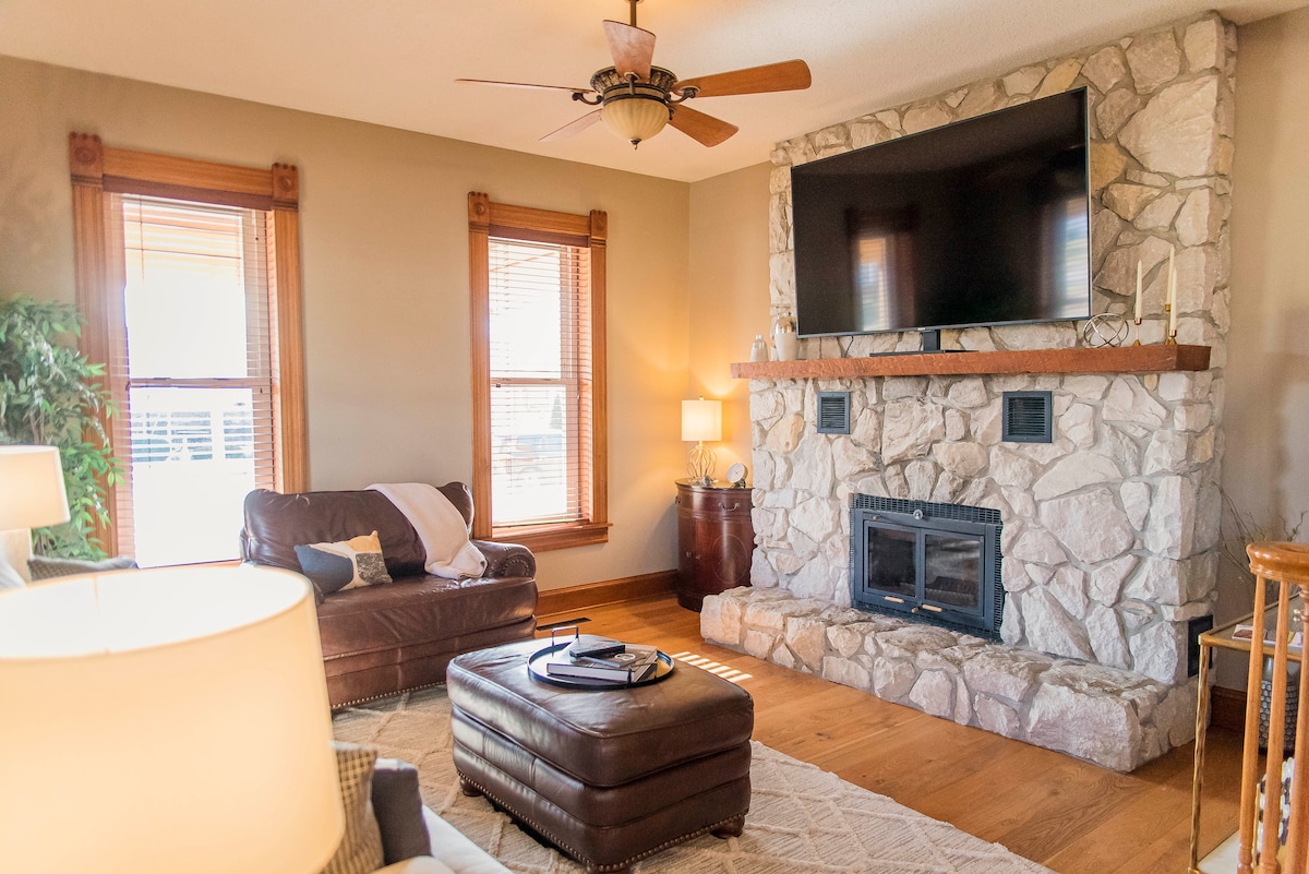 Centrally located, the Hawks Nest is perfect for the family visiting Quincy University. This cozy 3 bed house with 2 King beds, fully equipped kitchen, outdoor patio with fire pit and two car garage is within easy walking distance to campus and the world famous Abbey Restaurant. The interior boasts warm oak wood finishes, fine furniture and a 75" smart tv with high speed fiber for all your work or streaming needs.