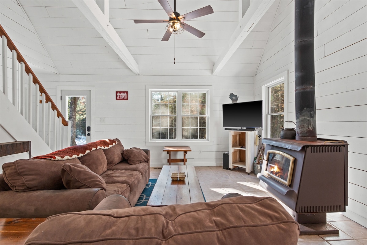 Bem-vindo a esta espaçosa cabana de 1.800 pés quadrados que inclui 3 quartos e 2 casas de banho completas com grande sala de estar (com lareira) e grande sala familiar. Cabana rural em 12 hectares de terra com mais de 3 km de trilhos para caminhadas! Cercado no quintal é ótimo para famílias e animais de estimação. Inclui ar central, aquecimento, cozinha completa com máquina de lavar louça e lavandaria. Excelente localização para aceder a desportos e entretenimento! Idílico e tranquilo para quem quer uma escapadela tranquila.