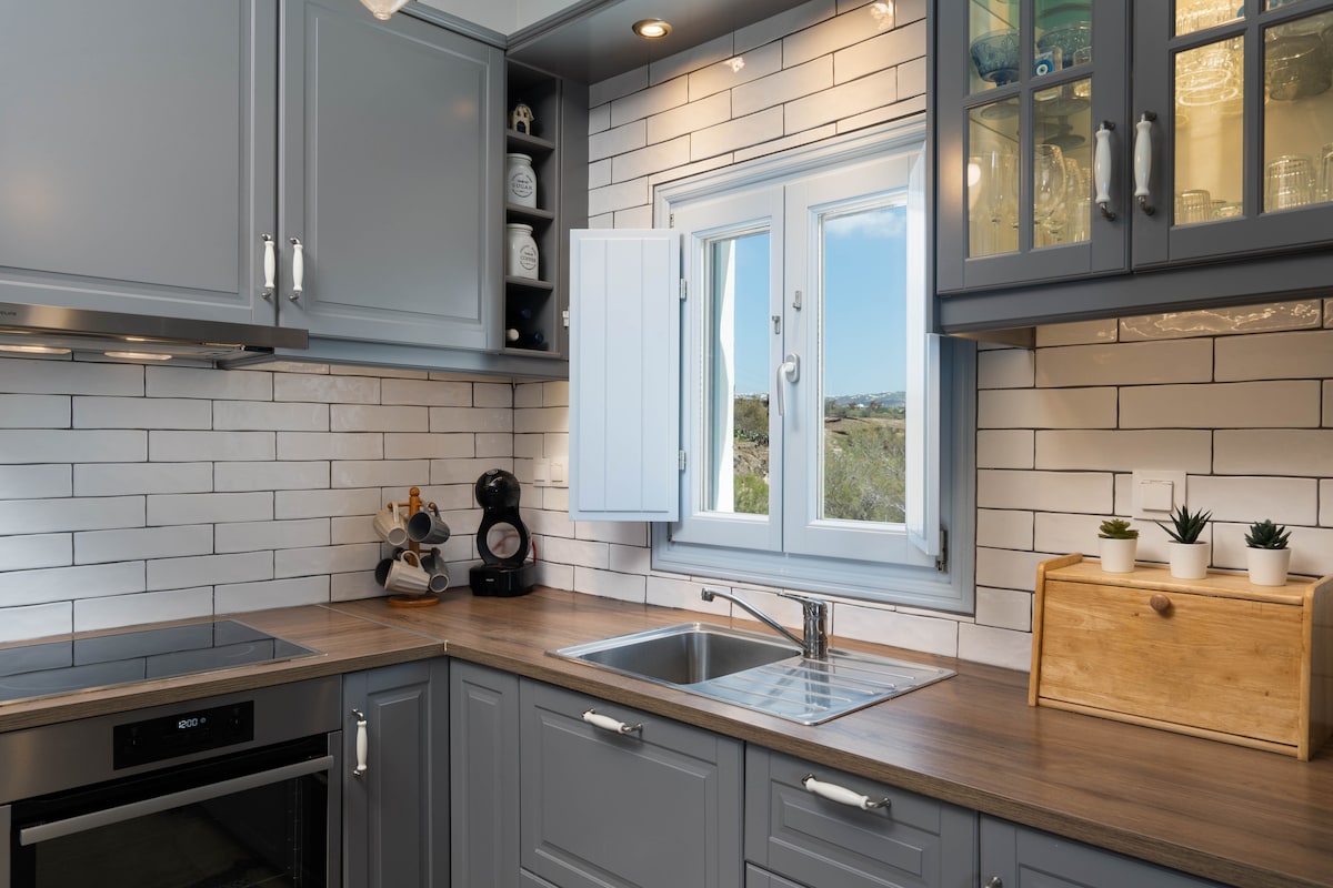Descubra a verdadeira Santorini, além das rotas turísticas lotadas. A Mayia Cave House é uma casa de caverna tradicional cicládica do século XIX renovada na tranquila vila medieval de Pyrgos. Oferece todas as comodidades modernas, uma espetacular piscina privativa de caverna aquecida, uma banheira de hidromassagem privativa no terraço e vistas incríveis para Santorini, incluindo o famoso pôr do sol.