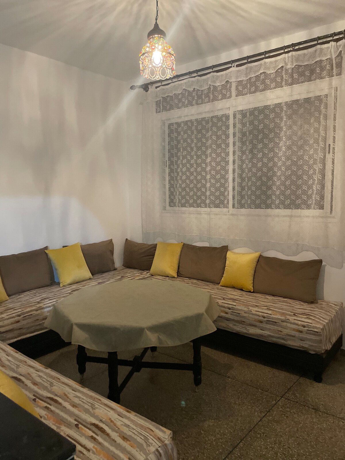 O apartamento oferece casa de banho privativa e chuveiro com cozinha, apartamento de um quarto com uma grande sala de estar. no total, este espaço pode acomodar até 4 pessoas. dois dormindo no quarto e outros dois na sala de estar espaço que oferece duas camas de dormir. a Casa oferece um belo jardim com uma piscina com um incrível espaço de sala de estar interior para yoga ou dança, onde fazemos eventos especiais às vezes, com terraço no telhado com vista para a cidade de Agadir 20 km de distância