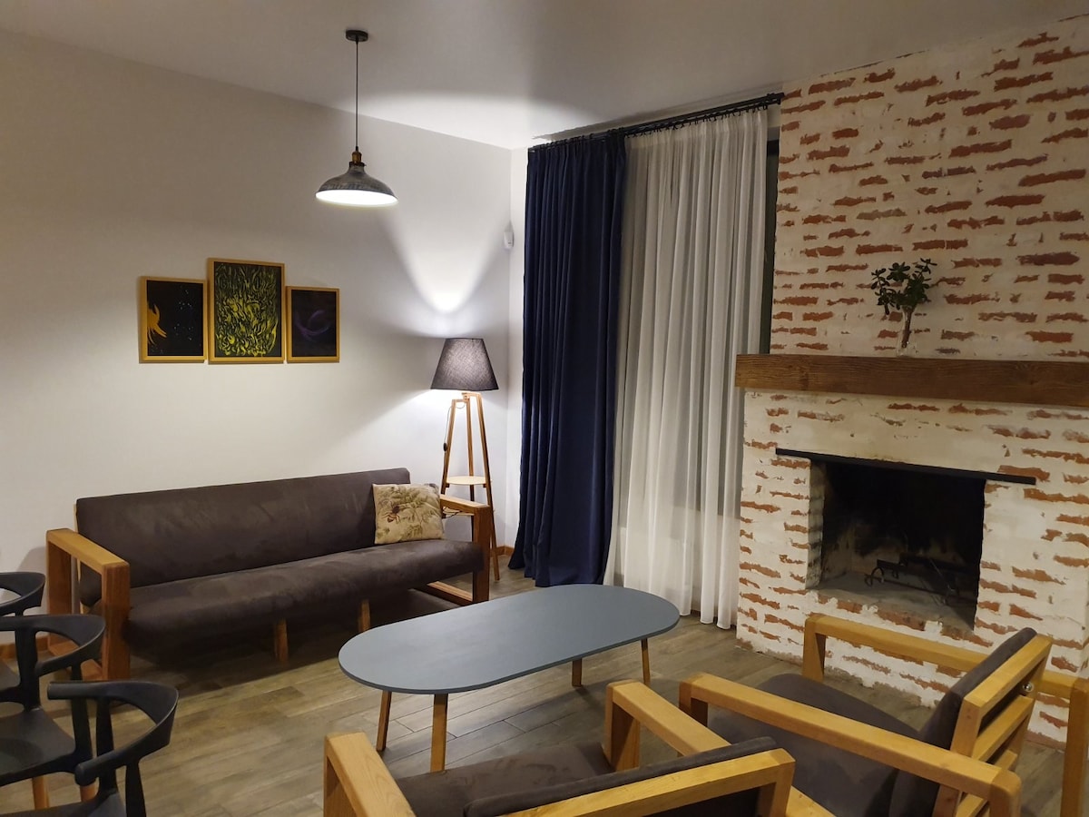 A nossa casa é uma harmonia de silêncio, natureza e uma localização ideal. Vive num lugar tranquilo e isolado, a poucos minutos do centro de Bakuriani e das pistas de esqui. Atrás da casa há uma floresta tranquila, em frente a ela há vistas para a montanha. Aqui encontrará privacidade, atmosfera de montanha e acesso conveniente a todos os pontos-chave. Perfeita para famílias e grupos de amigos.