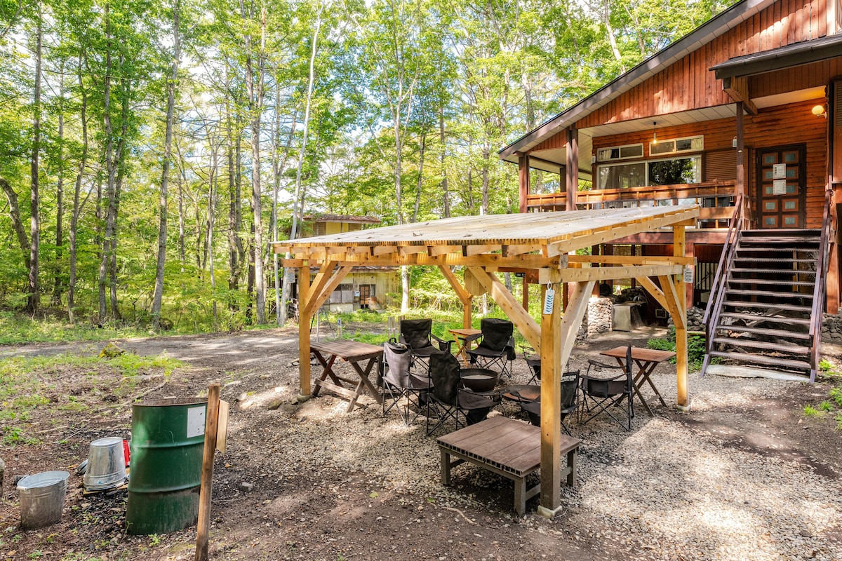 Churrasqueira no telhado | TV de 75 polegadas | Fogueira | Sala de estar com ventilação | Banho ao ar livre | Turismo em Karuizawa e Kusatsu | 1 casa para até 10 pessoas