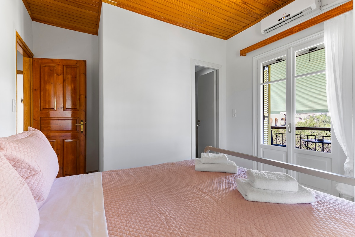 Apartamento T2 com casa de banho privativa e varanda privada. Parte de uma antiga mansão construída no século XVII. Recentemente renovado para que possa acomodar confortavelmente duas pessoas. No centro da ilha Spetses. A cinco minutos a pé do porto principal. A cinco minutos a pé da maioria das atrações (mercado principal, restaurantes, bares, museus, praia Agios Mamas).
