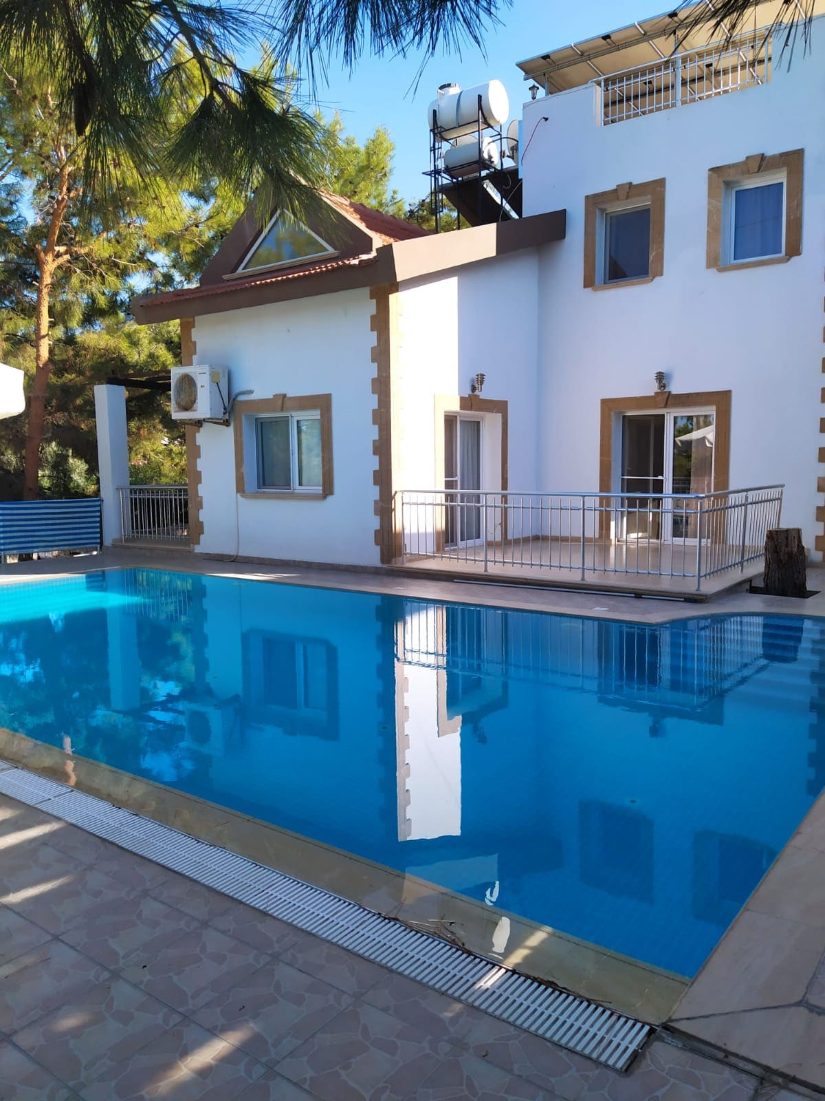 Moradia no TOP 10% da Airbnb. A 5 minutos da praia, parque aquático e casino do Acapulco Hotel, a 20 minutos do centro de Girne. A casa tem um grande cinema, cadeira de massagens, mobiliário de mármore luxuoso, vistas panorâmicas e transporte elétrico gratuito! Esta requintada moradia dupla (duplex) num complexo fechado com 3 piscinas tem jardim privado, fonte, ping pong, mangal, baloiço, trampolim e 2 fontes. Duas lojas, dois restaurantes e um café perto da casa. Festas e o convite de mulheres de fora são proibidos.