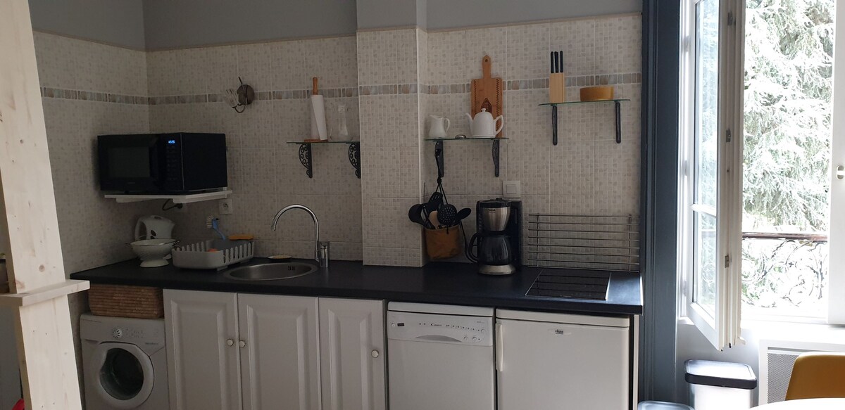 Alugue um estúdio encantador de 29 m² muito ensolarado no andar térreo em uma residência segura. No centro da cidade, a 150 m do Parque de Verdure e da Rue Chambéry com todos os comerciantes. Perto da estação de trem e das termas. Totalmente mobiliado, funcional com todos os eletrodomésticos novos. Sofá-cama rápido conversível 160 x 200 cm. Roupa de cama fourni.Fibre+TV com Netflix integrado (conexão com sua conta). Proximidade do cassino. Perto das estações de esqui: Savoie Grand Revard e Féclaz (25 min de carro)