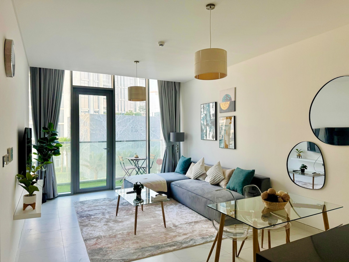 Quem é Oraya? Somos mais do que uma empresa de casas de férias. Temos agentes dedicados especializados em garantir que tem uma experiência perfeita ao visitar o Dubai. Bem-vindo ao nosso elegante apartamento de um quarto localizado no prestigiado District One Residences 14 em MBR City, Dubai. Este apartamento lindamente concebido, com 71 metros quadrados, está situado no 6º andar e oferece uma estadia luxuosa e confortável para até 4 hóspedes.