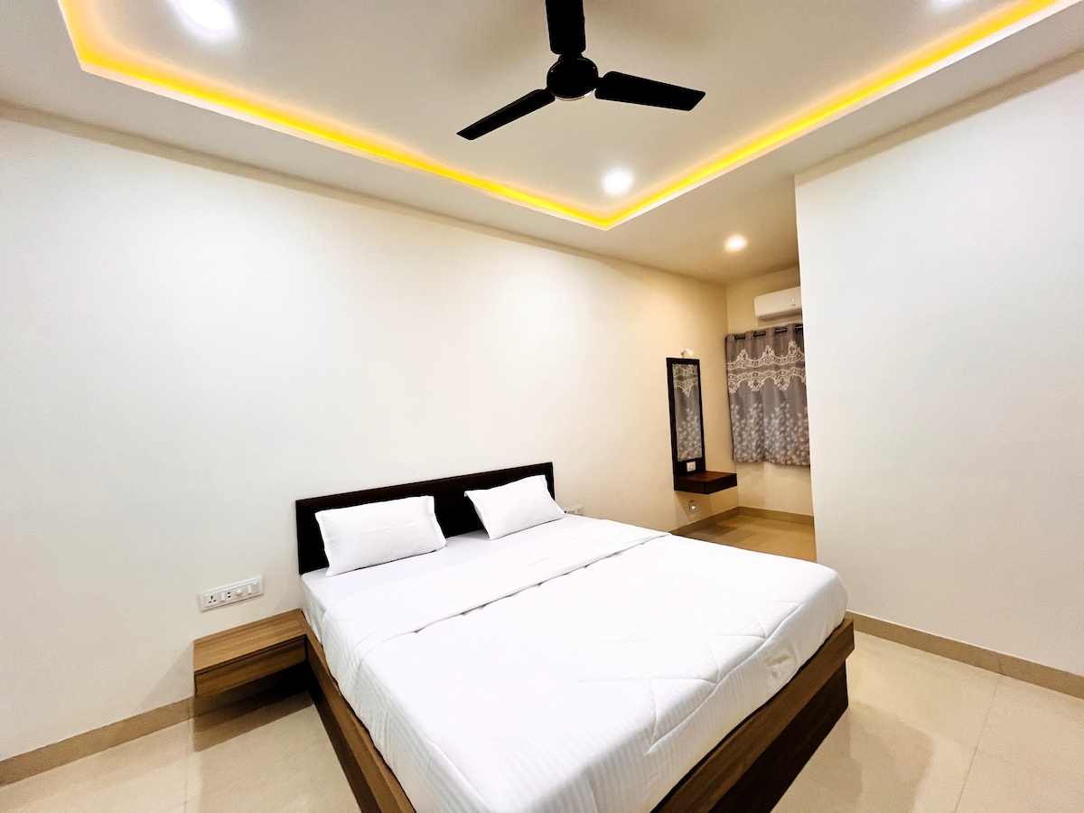 Welcome to The Regal Retreat – a cozy yet luxurious 1BHK studio designed for comfort and style. Enjoy self check-in with a lock box outside, blackout curtains, a king bed, and a sofa-cum-bed for up to 4 guests. Relax with a projector for movie nights or cook in basic kitchen items with induction, fridge, RO water, tea & coffee. Bathroom includes essentials, towels on request. Pickup, tours & shoot services available. Safe, police-verified stay.
