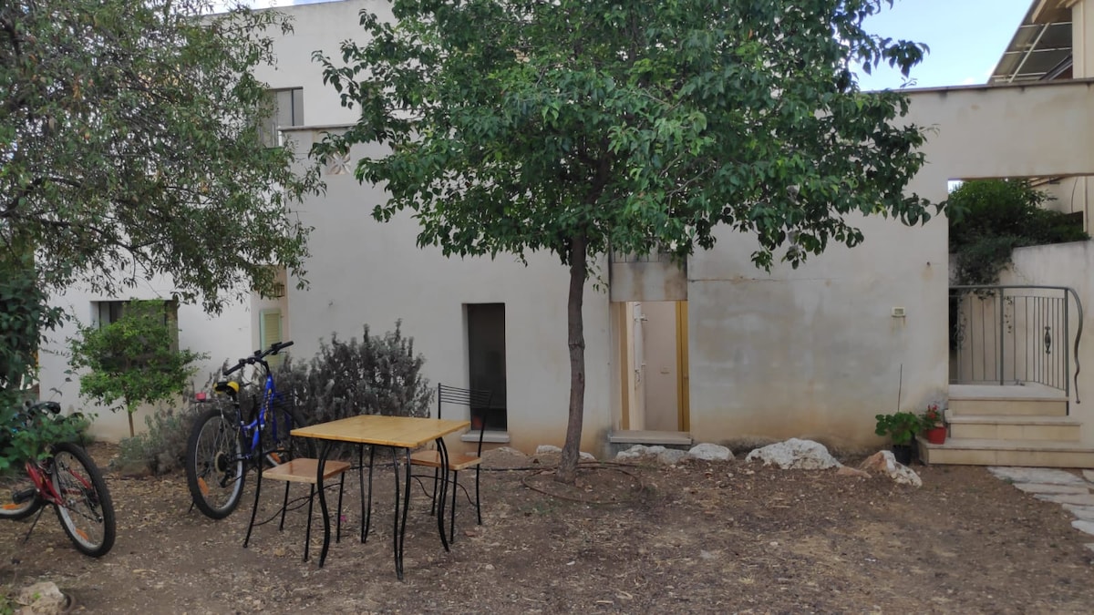 Um B&B de 17 metros que tem tudo ! Cozinha inclui pratos, frigorífico , máquina Nespresso, panela, chuveiro , etc... Os entusiastas do cinema têm um projetor + sistema de som + AppleTV que inclui Netflix , TV Cellcom para o programa .. Cama super confortável Hollandia que dobra em um sofá durante o dia ( 140/190 ) . As figueiras rodeiam o B&B e dão uma atmosfera mágica. Adequado para um casal à procura de paz para o fim de semana e geralmente todos são bem-vindos (-: Chegue sem marcação e desfrute de 100% de privacidade (check-in autónomo) com aviso prévio
