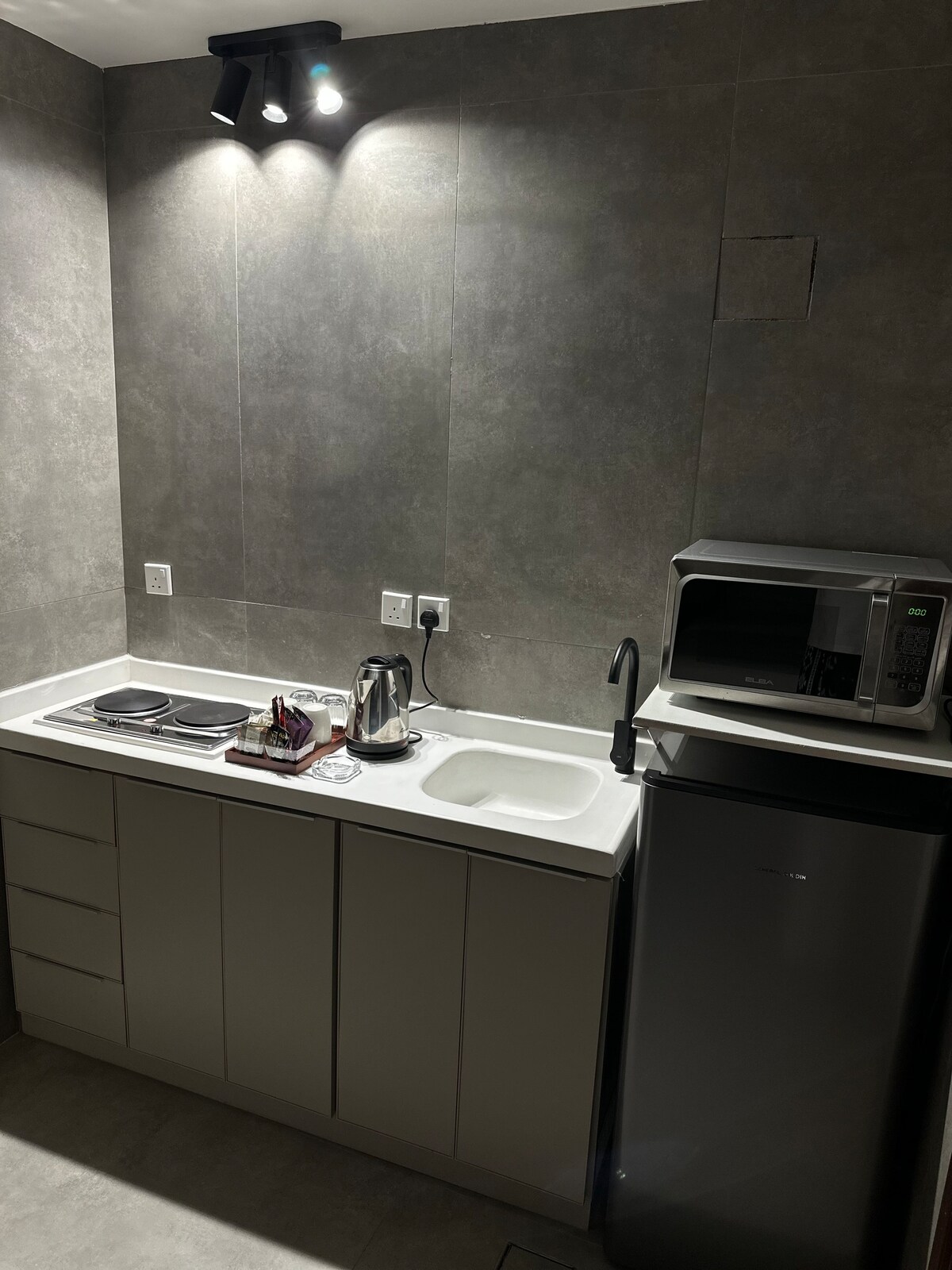 Relax in this modern, hotel-style apartment in Al-Faiha, a prime area of Jeddah. It features a comfortable bedroom, cozy living room with a 65” smart TV, dining area, and a fully equipped kitchen. Enjoy a modern bathroom with a rainfall shower, high-speed internet, and parking. Close to Al Salam Mall, Al Andalus Mall, King Abdulaziz University, hospitals, and the train station—ideal for both business and leisure stays.