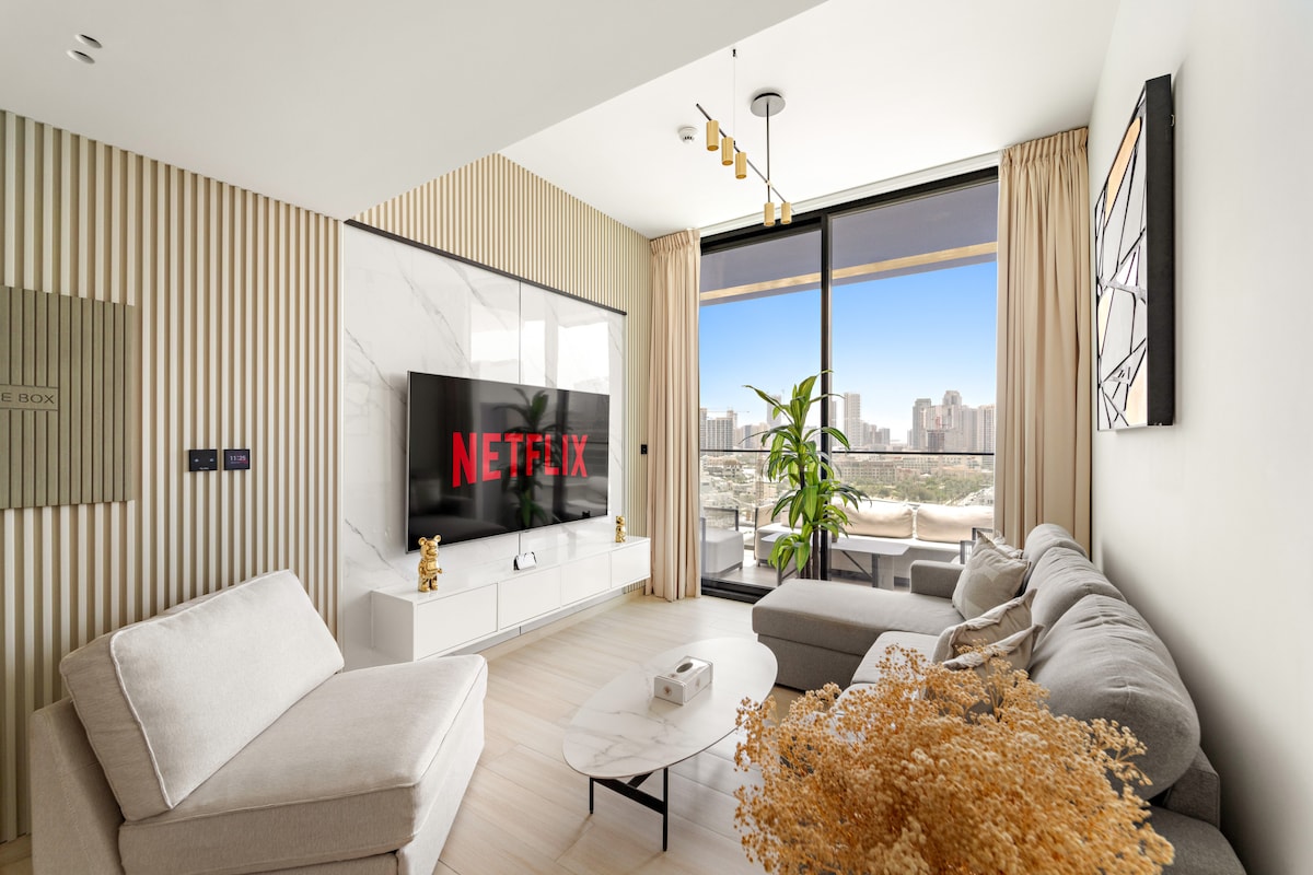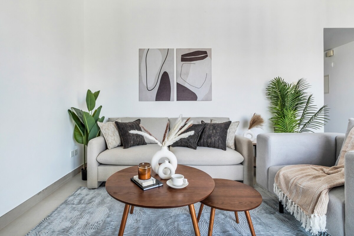 Fuja para o conforto e o estilo neste moderno apartamento de 2 quartos no coração de Jumeirah Village Circle. Perfeita para famílias, amigos ou casais, esta casa tem uma piscina privada única na varanda, o seu próprio oásis no céu. Desfrute de um espaço de estar luminoso com Smart TV, uma cozinha totalmente equipada e quartos acolhedores com roupa de cama premium. Localizado numa comunidade vibrante com cafés, lojas e parques nas proximidades e a apenas uma curta viagem de carro da Marina do Dubai e do centro da cidade. Relaxe, recarregue e torne cada estadia memorável!