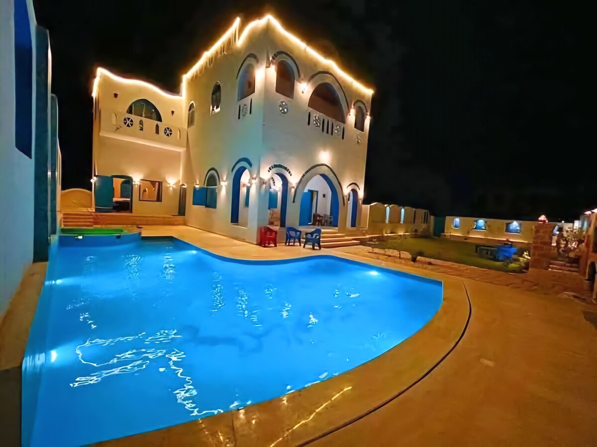 O refúgio perfeito, a apenas 140 km do Cairo. Desfrute desta vila privada, central e ensolarada no coração da vila de Tunes, completa com um belo jardim com vista para o Lago Qarun, onde você pode relaxar após um longo dia explorando todas as experiências autênticas que a vila de Tunes tem a oferecer. Estamos a uma curta distância a pé de todos os marcos famosos. A 2 minutos a pé do Lazib Inn. Nosso enorme espaço inclui 4 quartos, 3 banheiros, 2 cozinhas. A casa é dividida em dois andares para maior privacidade.