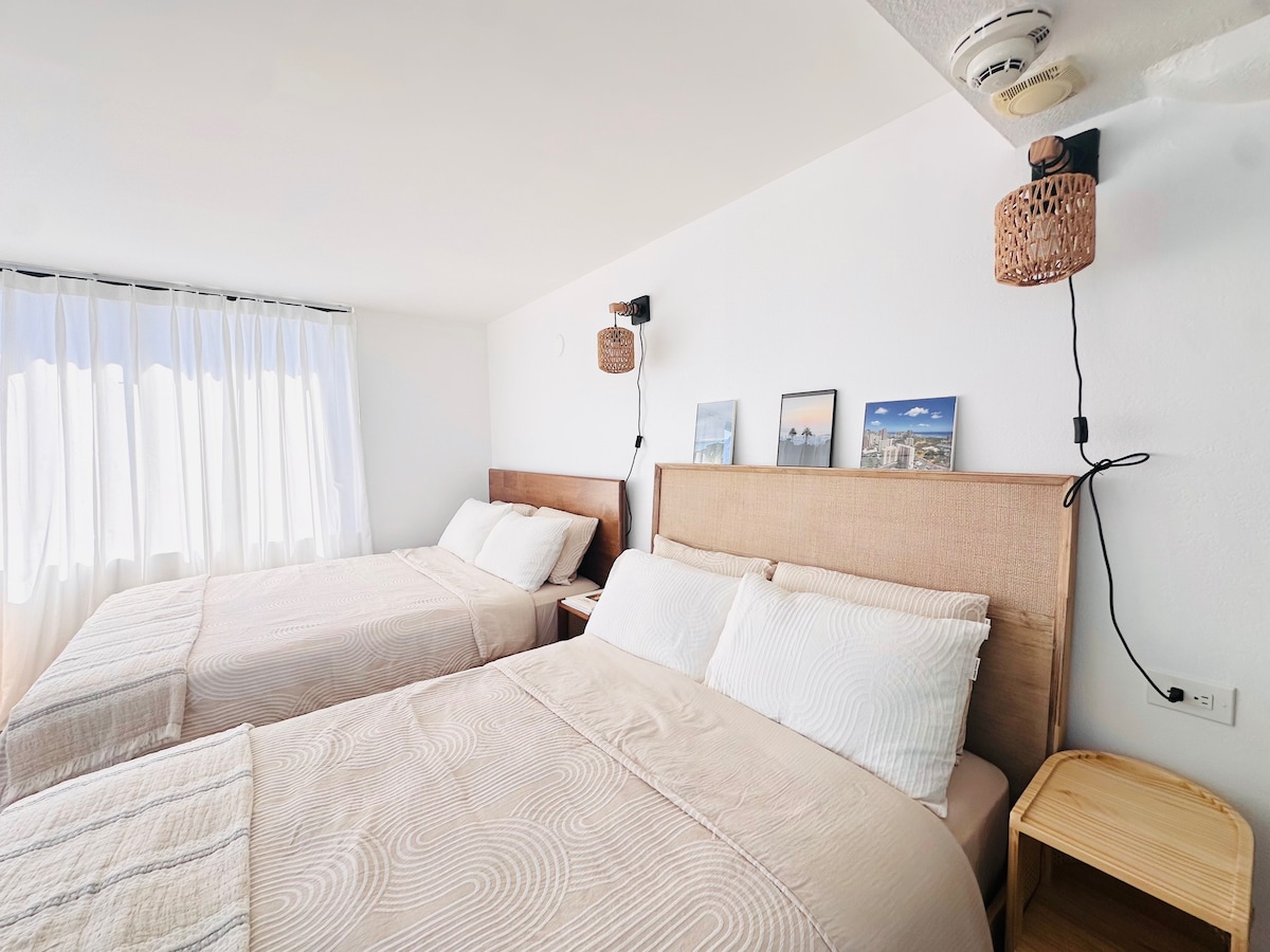 Localizado no 35º andar do edifício Hawaiian Monarch, este lugar de duas unidades de estúdio adjacentes é o lugar perfeito para desfrutar das suas férias em família! Com vistas fabulosas da cidade, das montanhas, do Canal Ala Wai, do Diamond Head e do oceano, a unidade A vem com duas camas Twin XL que podem ser combinadas numa cama King, uma casa de banho completa e cozinha completa que inclui alcance elétrico, frigorífico de tamanho completo. A unidade B tem uma cama queen, uma casa de banho completa e uma cozinha. Fácil caminhada até à praia de Waikiki, restaurantes e lojas.