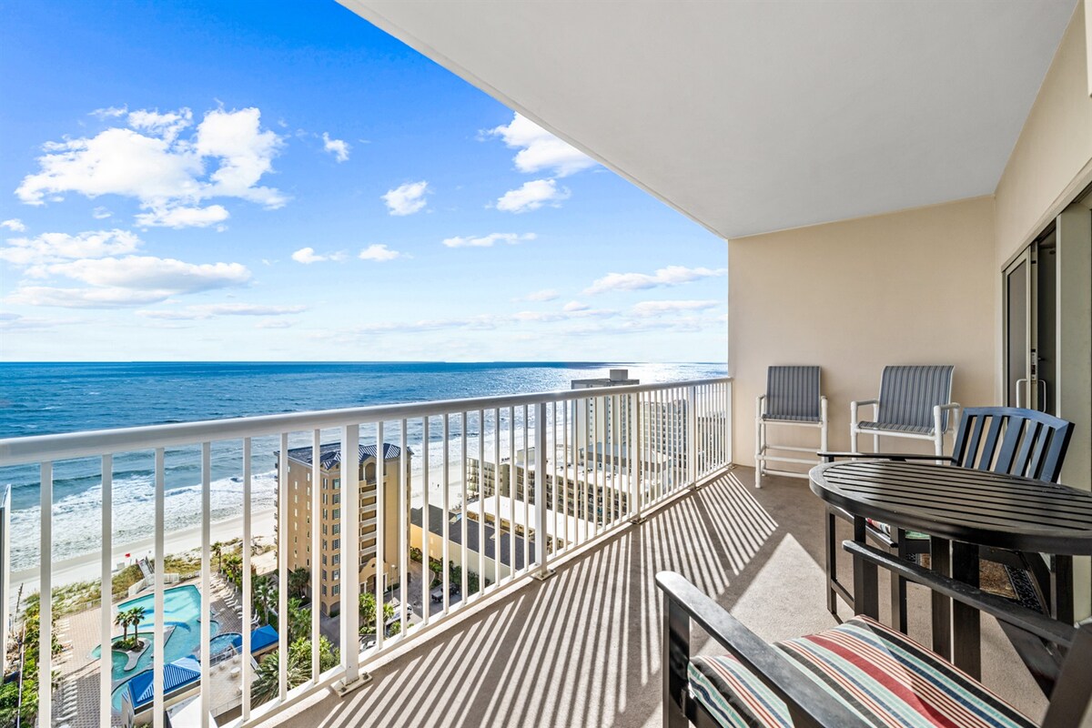 Piscinas interiores e exteriores!! Gulf Front! - 1700 pés quadrados camas para 10 hóspedes. No 14.º andar, com uma vista irresistível para o Golfo do México, de cor verde-esmeralda, varanda, 2 quartos com camas king e casas de banho privativas, 2 sofás-cama queen e 2 camas individuais desdobráveis. A cozinha está totalmente equipada. Mesas/bancada de bar para refeições. Máquina de lavar/secar roupa na unidade. Ginásio, banheira de hidromassagem, piscina infantil. Oferecemos conjuntos iniciais de produtos de papel e de detergentes. Wi-Fi disponível. As estadias superiores a 1 semana podem implicar taxas de limpeza adicionais.