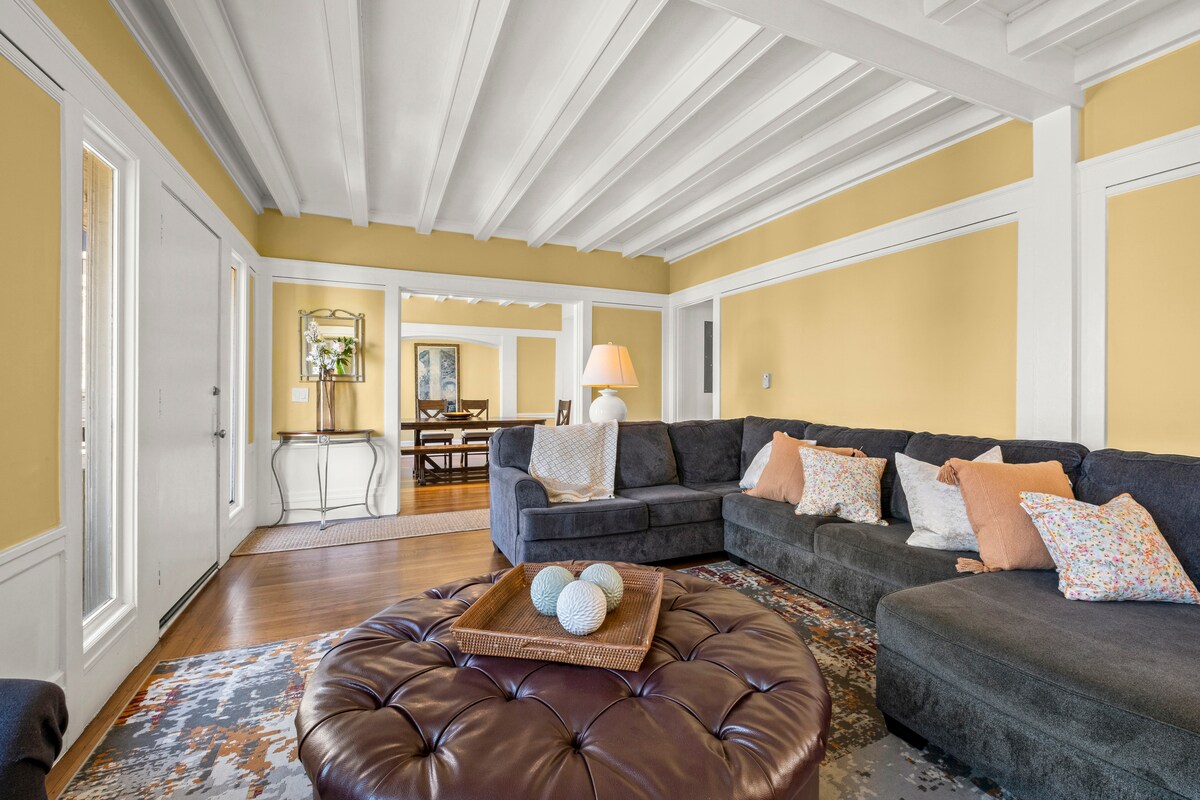 Desfrute de conforto e privacidade neste retiro espaçoso com uma casa principal de 3 quartos e 2 casas de banho e uma casa de hóspedes separada de 2 quartos e 1 casa de banho com entradas privadas. Perfeito para famílias, grupos ou estadias multigeracionais. Inclui aquecimento central/ar condicionado, Wi-Fi e um espaço exterior ensolarado. Viajem juntos, relaxem separados! O quintal oferece um oásis privado com mobiliário de exterior e uma grelha de churrasco, perfeita para refeições ao ar livre ou para desfrutar de noites quentes sob as estrelas.