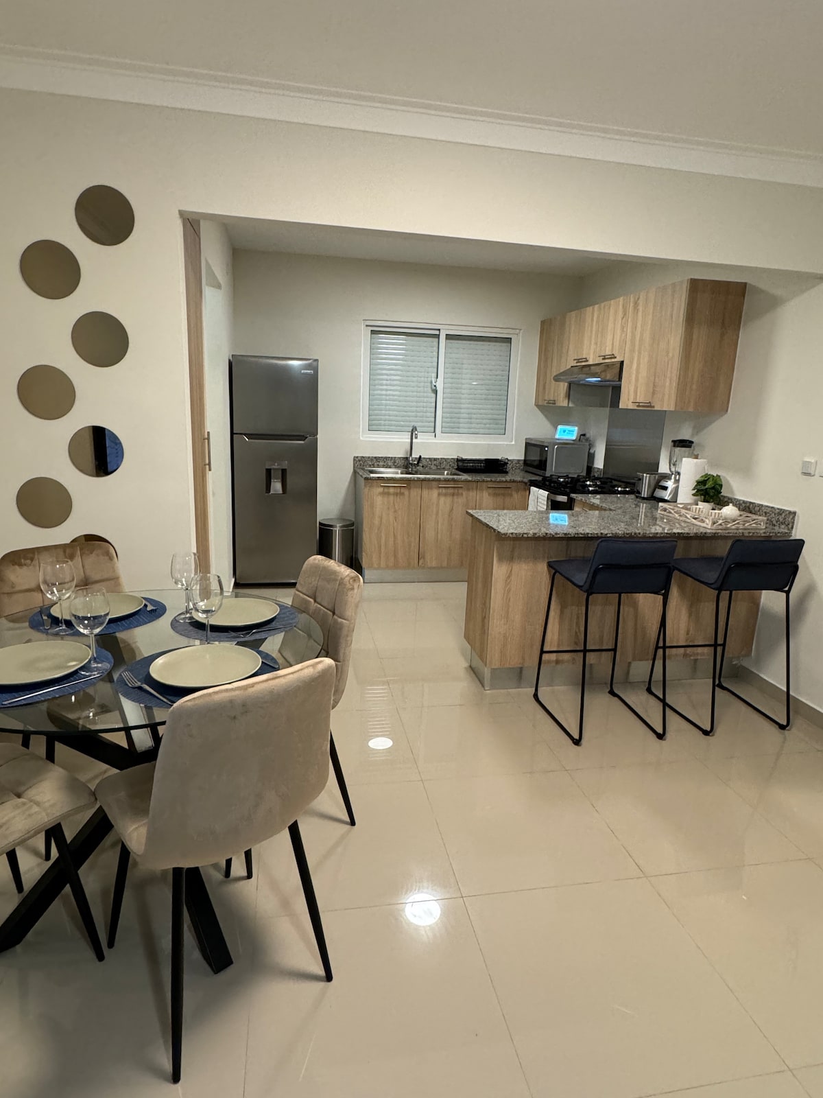 Relaxe neste espaço tranquilo e elegante localizado em Santo Domingo, muito perto da Embaixada dos Estados Unidos. É um apartamento de um quarto com uma decoração muito elegante e diferente. Este apartamento tem acesso a importantes centros comerciais, restaurantes e supermercados. Este apartamento está localizado na Residencial LP9 em Santo Domingo, é muito seguro e pode fazer caminhadas nos arredores