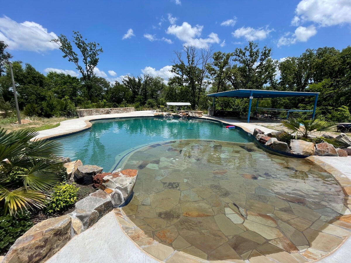 Fuja do seu dia a dia com a nossa acolhedora casa de 3 quartos localizada em 4 acres de terra. Capaz de acomodar 8 pessoas, incluindo crianças. Família amigável com um lago privativo nos fundos. Vá pescar, jogue no pátio e até cozinhe com a nossa churrasqueira no pátio. Ou fique dentro e use nossa cozinha de última geração para um bom jantar com a família. Também estamos localizados a cerca de 5 minutos de carro do Lago Fork.
