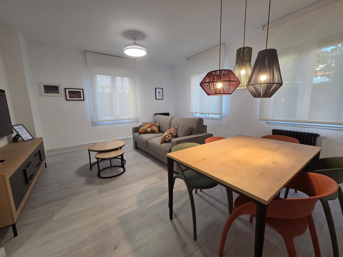 Desfrute da simplicidade deste encantador alojamento tranquilo e central. A cinco minutos a pé do centro de Teruel,com tudo o que precisa muito perto,restaurantes,supermercado , monumentos mais importantes,museus, etc. Vai sentir-se em casa, estacionamento fácil por perto. TV na sala de estar e no quarto, cozinha totalmente equipada. Cama de casal e sofá cama grande. Aceita animais de estimação,elevador,Google crhomecast, Wi-Fi disponível, ar condicionado e ventoinha de teto no quarto.