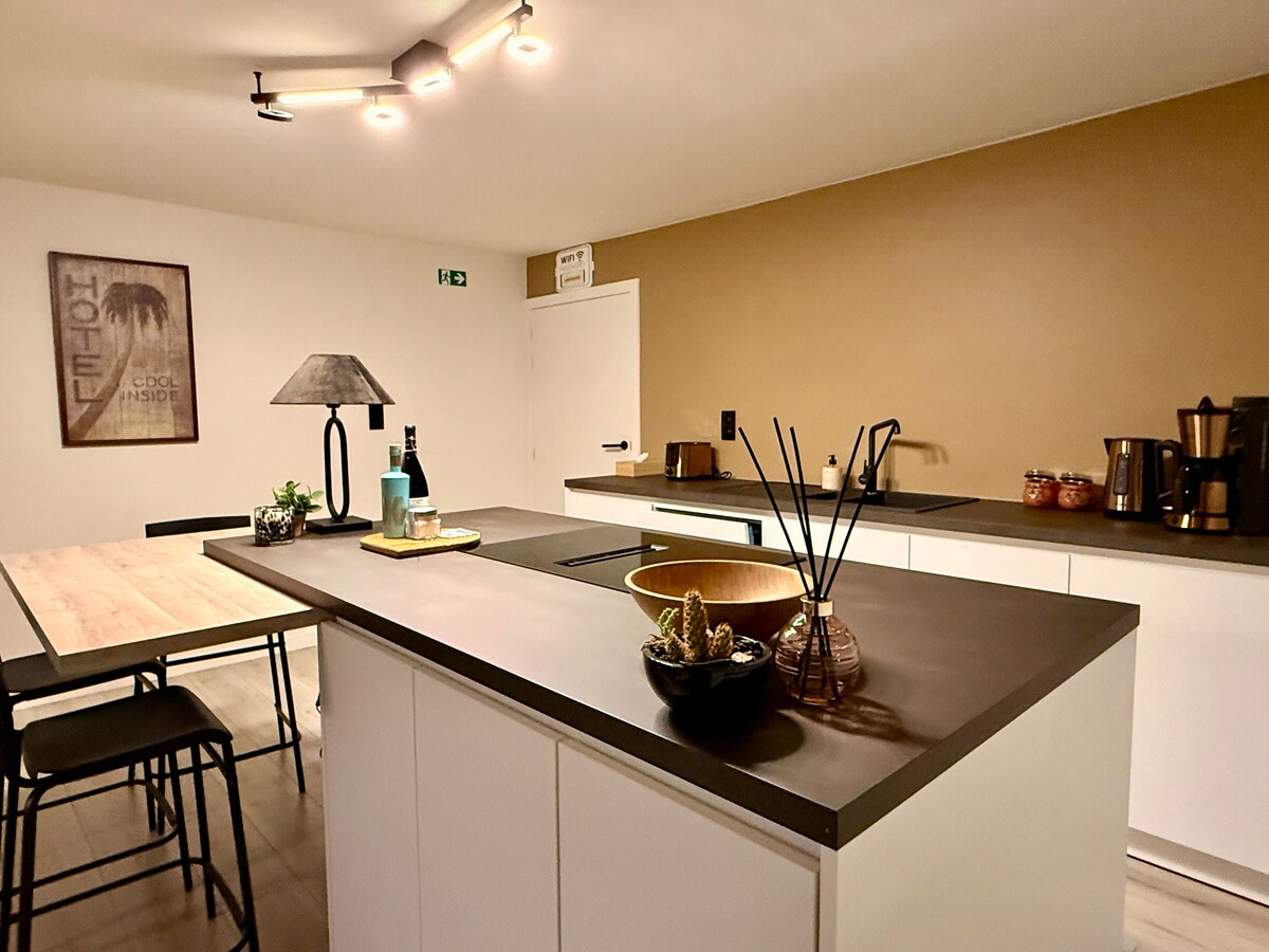 Esta moderna casa de férias tem todos os trunfos para lhe proporcionar umas férias fantásticas: aconchegante, confortável, elegante e artisticamente decorada, com louça artesanal, um maravilhoso chuveiro de efeito chuva, um belo terraço privativo no verde. Localização tranquila perto da reserva natural de Maten, da rede de ciclovias e do domínio de Bokrijk. Você pode absorver a cultura, jantar ou fazer compras em Genk e Hasselt. A anfitriã é ceramista e terá todo o prazer em explicar seu ofício em seu estúdio.