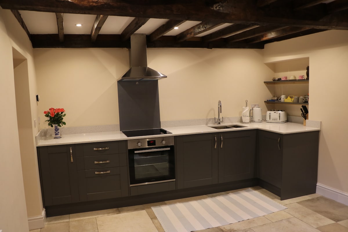 O Garden Flat é uma nova extensão independente do nosso celeiro de pedra convertido em Oxfordshire, nos arredores de Hook Norton, na orla de The Cotswolds, com vistas deslumbrantes de todas as janelas. Mobilado de forma atrativa e com bom gosto com uma pequena área de kitchenette, placa de 2 anéis, frigorífico/congelador, máquina de lavar loiça, micro-ondas, torradeira e chaleira - sem FORNO; quarto duplo com cama king size e chuveiro/casa de banho privativa. Uma grande área de pátio com churrasqueira com mesa e cadeiras e vistas deslumbrantes sobre o vale e o pôr-do-sol.