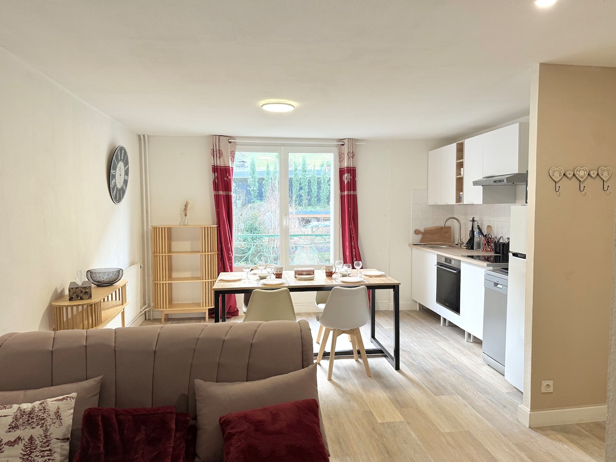 Alojamento reformado, perto de um Carrefour Market (50m) com lavanderia, uma estação de esqui a 12 km (Le Collet d'Allevard), um spa (1 km), um cassino (estabelecimento de jogos, 500m), uma escola de parapente (250m). É perfeito para casais, viajantes sozinhos, famílias (com crianças) e amigos de quatro patas. O apartamento está equipado com uma cama de casal e um sofá-cama de 140 cm. Pátio com mesas e cadeiras à sua disposição, mas estacionamento proibido.