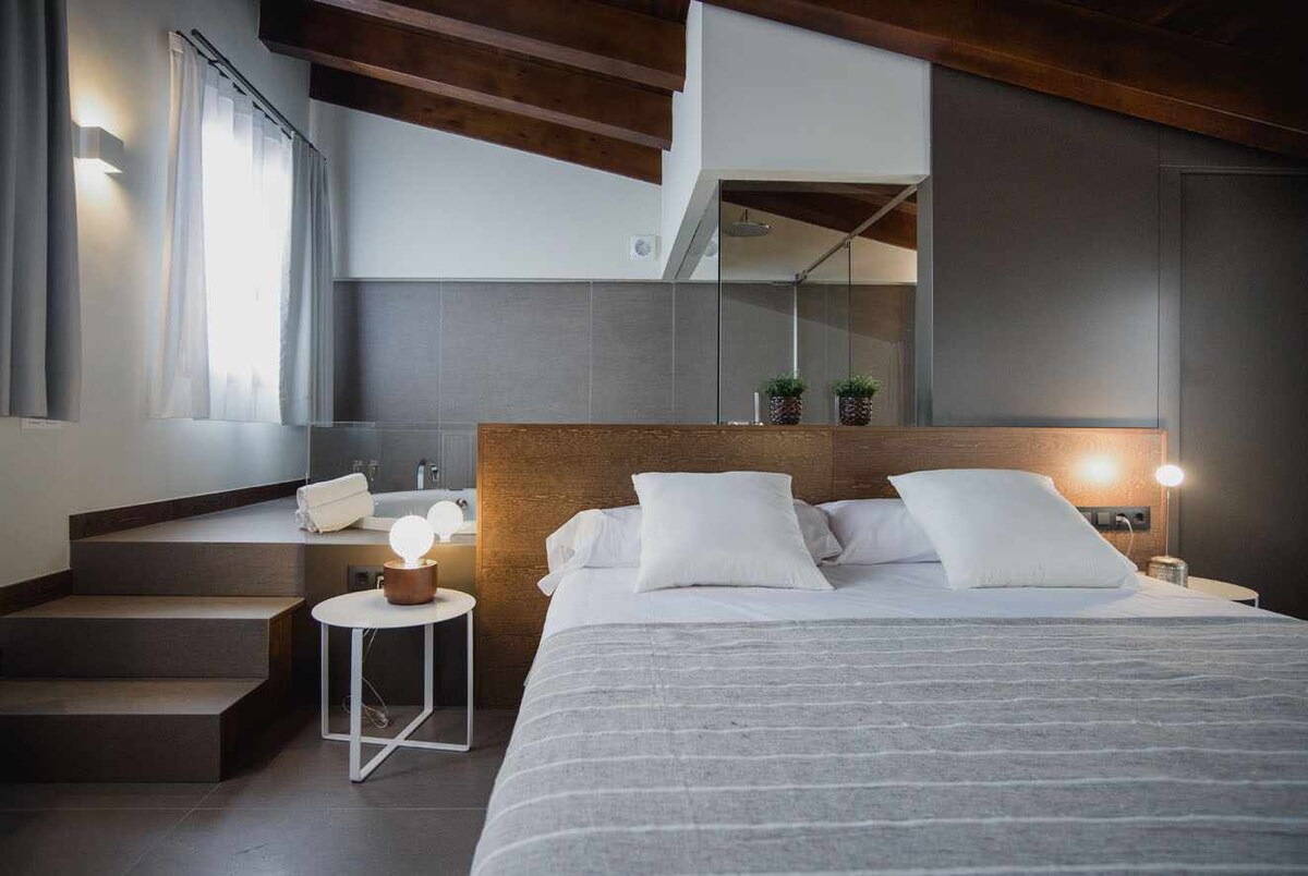 Grande loft com vistas maravilhosas para a montanha e o Jardim Botânico do município. É o último andar de uma casa restaurada do início do século XVIII. O loft é aberto, tem uma área com cama de casal e dois terraços, outra área de jantar com smart TV e sofás e outra área com um sofá-cama de casal. Também tem banheiro com chuveiro e um mezanino acessado por uma escada espetacular onde fica a cozinha, totalmente equipada e com área de refeições Ideal para um ou dois casais.
