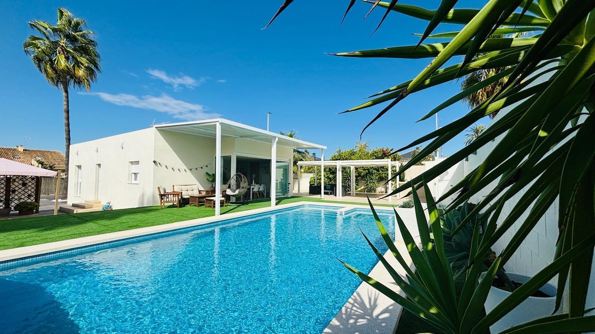 Descubre el lujo y la tranquilidad en esta impresionante villa de estilo español ubicada en primera línea de playa. Con su piscina y jardín privados, diseño luminoso y espacioso y modernas comodidades, este es el retiro perfecto para quienes buscan una escapada idílica. Además, su cercanía a Valencia (solo a 25 minutos en coche) lo convierte en el punto de partida ideal para explorar las maravillas de esta histórica ciudad.