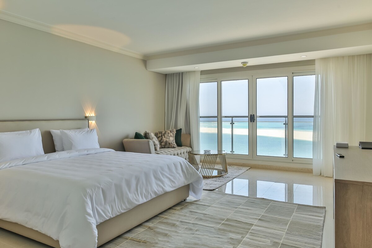 Experimente o encanto da suíte de 2 quartos do Reem Bay Hotel, projetada para famílias e pequenos grupos. Esta espaçosa suite dispõe de dois quartos com quatro camas confortáveis, 1,5 casas de banho modernas e vistas deslumbrantes para o mar na primeira fila. Acorde com o som suave das ondas e desfrute de acesso direto a praias arenosas. Com uma decoração elegante e amplo espaço para relaxar, esta suite cria um espaço acolhedor para até seis hóspedes. O Reem Bay Hotel promete um retiro à beira-mar memorável com puro conforto e elegância.