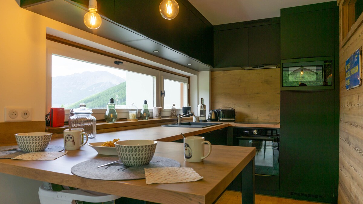 AO PÉ DAS ENCOSTAS, DUPLEX NO ÚLTIMO ANDAR E ESTACIONAMENTO COBERTO. Totalmente renovado por arquiteto, 60 m², 2 quartos e 2 casas de banho, incluindo uma com banheira, 2 wc incluindo um terraço independente virado a sul, belas encostas e vistas para a montanha. Não negligenciado. Trilhas a 30 metros do teleférico de esqui Riou. Localizado no coração da aldeia, não é necessário carro durante a estadia. Estacionamento subterrâneo coberto. Cozinha nova equipada e eletrodomésticos novos. O FOGÃO A LENHA NÃO É UTILIZÁVEL.