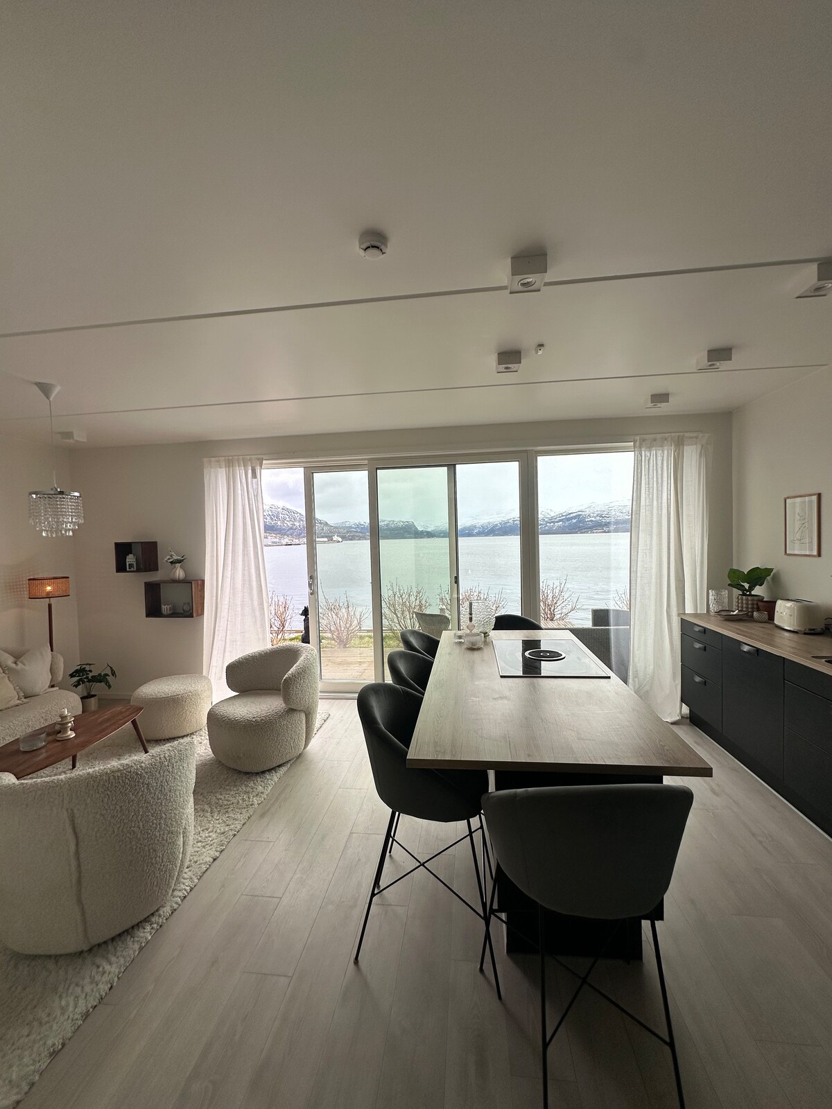 Apartamento moderno agradável, localizado na avenida à beira-mar. Sol de verão de manhã à noite. 1 lugar de estacionamento na garagem fechada preso no apartamento. Bairro tranquilo e tranquilo O apartamento tem uma cozinha moderna nova com máquina de café e refrigerador de vinho. Lavandaria com máquina de lavar roupa e secadora de roupa. Não é hipoalergénico, pois tem todos os cães no apartamento. A cerca de 15 minutos a pé do centro da cidade de Alta. A cerca de 10 minutos de carro do Aeroporto de Alta. Aproximadamente a 10 minutos de carro do museu Alta