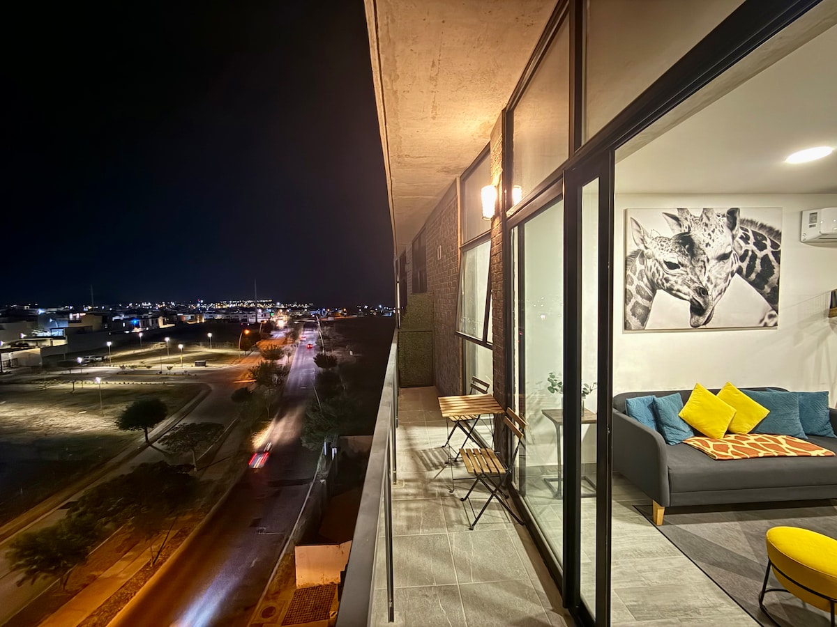 Bem-vindo ao Giraffe Loft, um espaço industrial, moderno e elegante no 5º andar. Desfrute da piscina no 20º andar com vistas panorâmicas e pôr do sol mágico a partir da varanda e do salão. Projetado para o seu conforto, possui um menu de almofadas, café, jogos de tabuleiro e máquina de gelo para a piscina. Se for a um evento no Auditorio Telmex, ganhe 10% de desconto na sua estadia 🎫