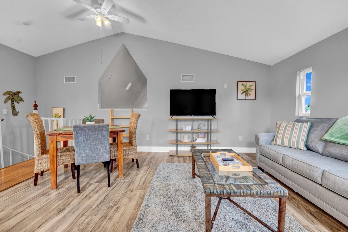 Desaparecer para Palm Paradise - uma casa de hóspedes acolhedora em estilo bungalow com todos os toques atenciosos para tornar a estadia memorável! Com mais de 700 pés quadrados, este pequeno anúncio inclui um soco com um conceito de vida aberta e um deck no andar de cima, além de uma cozinha completa, terá muito espaço para se espalhar e relaxar. A suíte fica perto de festivais e eventos anuais e, claro, das lindas praias do Golfo do México!