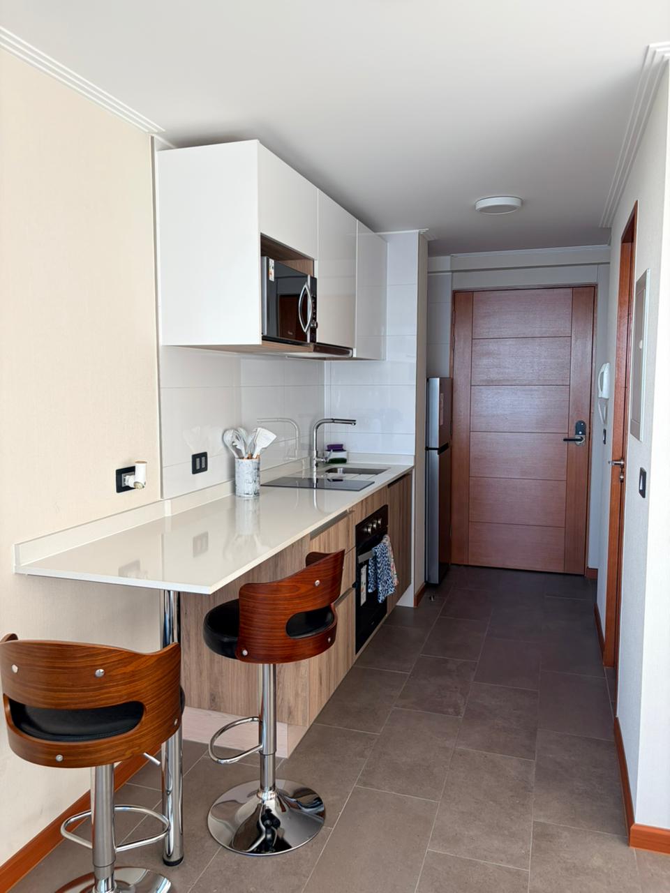 Desfrute de uma estadia única neste apartamento estúdio totalmente equipado localizado na península de Iquique. Tem uma vista impressionante da Playa Brava e também fica a poucos passos da Playa Cavancha e das principais atrações turísticas da cidade. Este espaço acolhedor combina conforto, design e uma vista espetacular que lhe permitirá acordar olhando para o oceano. Estacionamento privado disponível sem custos adicionais até 30 de abril de 2026.