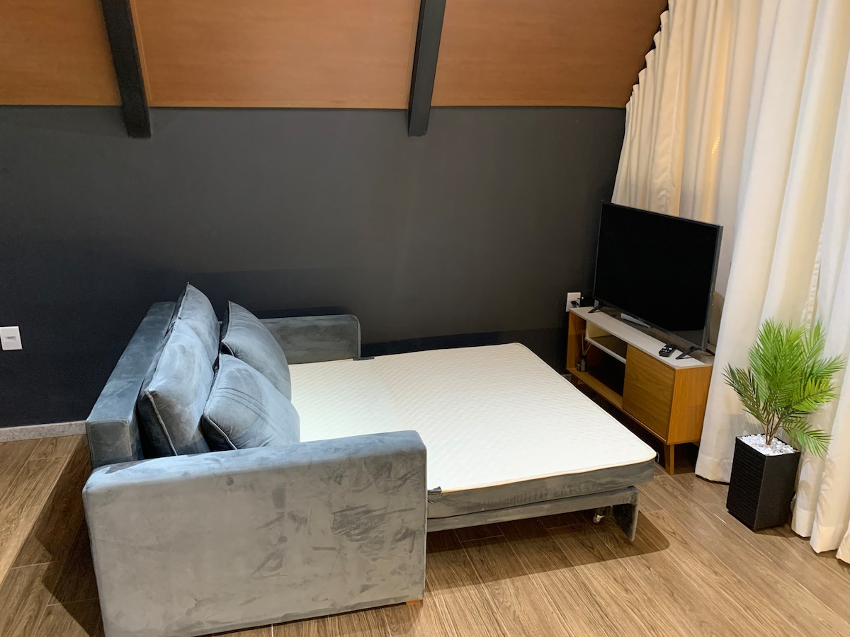 Chalé charmoso e iluminado aos pés das montanhas, a 100m de uma linda cachoeira e a 3 min da avenida principal. Possui cama de casal, sofá-cama, hidromassagem dupla, jardim, churrasqueira e fogo de chão. Ideal para casais, com clima romântico, LED aconchegante, muito conforto e natureza ao redor. Estacionamento no local e fácil acesso às principais vias da cidade. Um refúgio perfeito para relaxar!