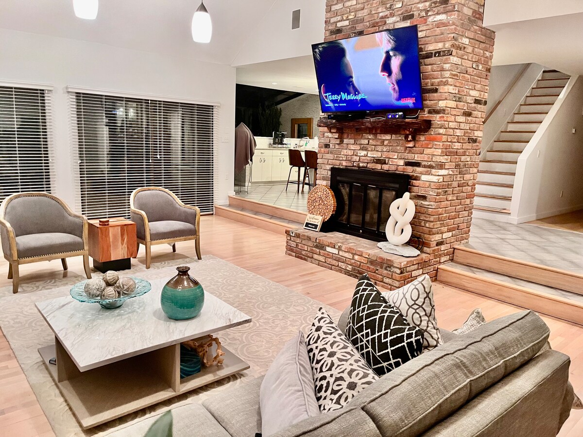 Cozinha de chef: 2 fornos/aplicações de luxo/café com Nespresso/Keurig 2 salas de estar Sala de jantar com capacidade para 10 pessoas Suite principal do 1º andar: cama king size, lareira a gás, deck mobilado com vista para a piscina, banheira de 4 peças: chuveiro enorme e banheira de hidromassagem 2 de 4 quartos de hóspedes no 1º andar Ginásio/sala de ioga: banco + pesos (sem passadeira) Televisões nos quartos, incluindo Firesticks. Oásis de quintal vedado com piscina de água mineral aquecida, espreguiçadeiras, cabana à sombra, refeições ao ar livre, churrasqueira Weber e chuveiro exterior. Kitchenette em escritório Ar condicionado central/aquecimento/ventoinhas