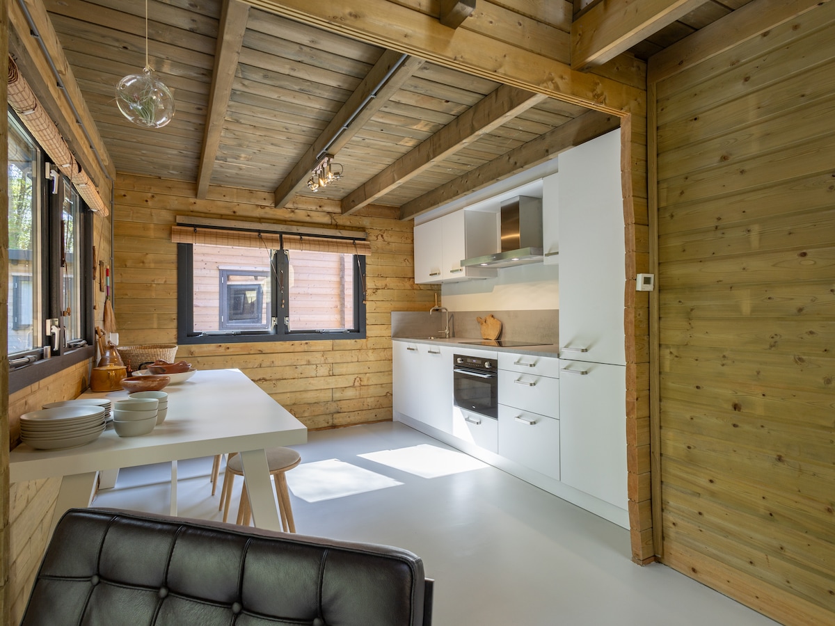 Linda casa decorada com bom gosto, localizada num parque acolhedor na orla da floresta. Esta propriedade promete uma experiência acolhedora rodeada pela paz e beleza da natureza. O acabamento de madeira e a decoração artística criam um ambiente relaxante. Uma área de estar confortável convida-o a relaxar após um dia de aventuras na floresta, a cozinha está bem equipada. O lugar ideal para famílias e amigos que procuram umas férias relaxantes Explore o centro da Holanda com as suas grandes cidades movimentadas, aproveite...