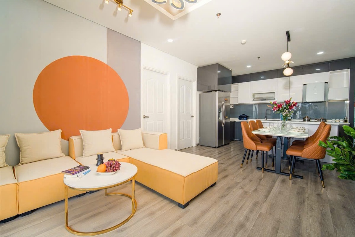 Situado no 27.º andar do Monarchy, este apartamento de 80 m² capta vistas panorâmicas do horizonte de Da Nang e da Ponte do Dragão, brilhando em tons dourados ao pôr do sol. Com um estilo em tons de terracota e madeira natural, equilibra o calor com a elegância, sendo perfeito para estadias prolongadas. Cozinhe na cozinha moderna, lave a roupa no interior, relaxe à beira da piscina após um dia de trabalho ou de exploração. Com cafés, mercados, caminhos ribeirinhos a poucos passos de distância, esta casa combina charme, conveniência e conforto para estadias prolongadas. ✨ ADICIONE-NOS À SUA LISTA DE FAVORITOS!