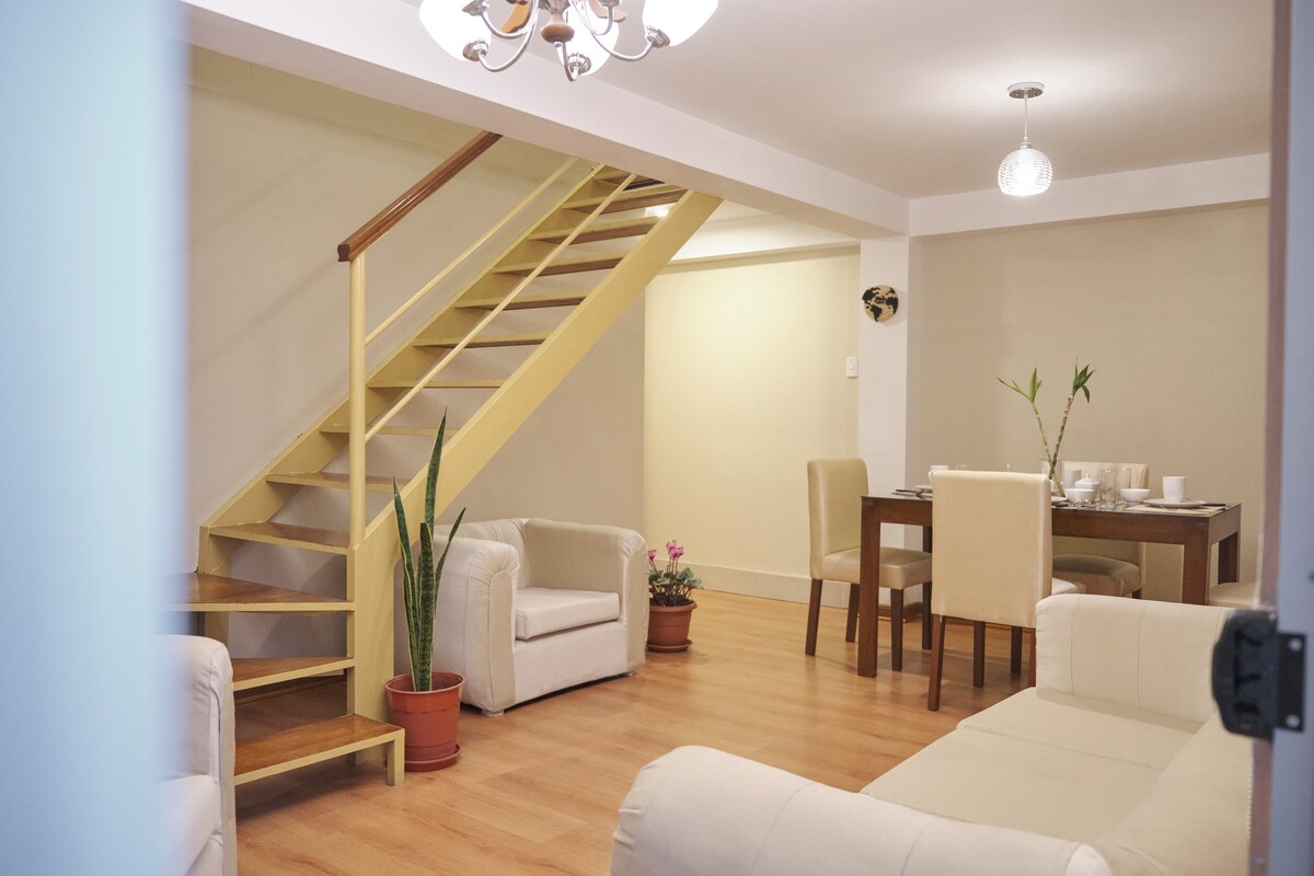 Lindo apartamento duplex em Huaraz, a três quarteirões da Plaza de Armas com dois quartos (3 camas), 1 1/2 banheiros. Perto de restaurantes, bancos e supermercados. Check-in antecipado: custo adicional de 100 soles. Apartamento confortável localizado no centro da cidade, a 3 quarteirões da praça principal. 2 quartos (3 camas), 1 1/2 banheiro. Perto de bancos, restaurantes e mercearias.