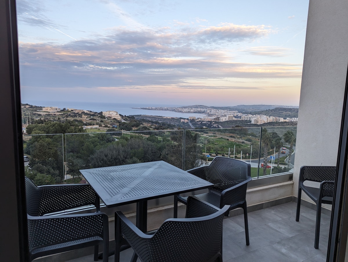 Um apartamento bonito, espaçoso, familiar e adequado para trabalho, com vista para a área residencial mais procurada de Mellieha. O apartamento é totalmente climatizado e tem uma jacuzzi privativa de 2/3 lugares no seu terraço. Os hóspedes também têm acesso à academia totalmente equipada no mesmo edifício. O apartamento fica a 15 minutos a pé da maior praia de areia de Malta (2 minutos de carro) e relativamente perto de todas as comodidades, incluindo supermercados, lojas, cabeleireiros, etc.