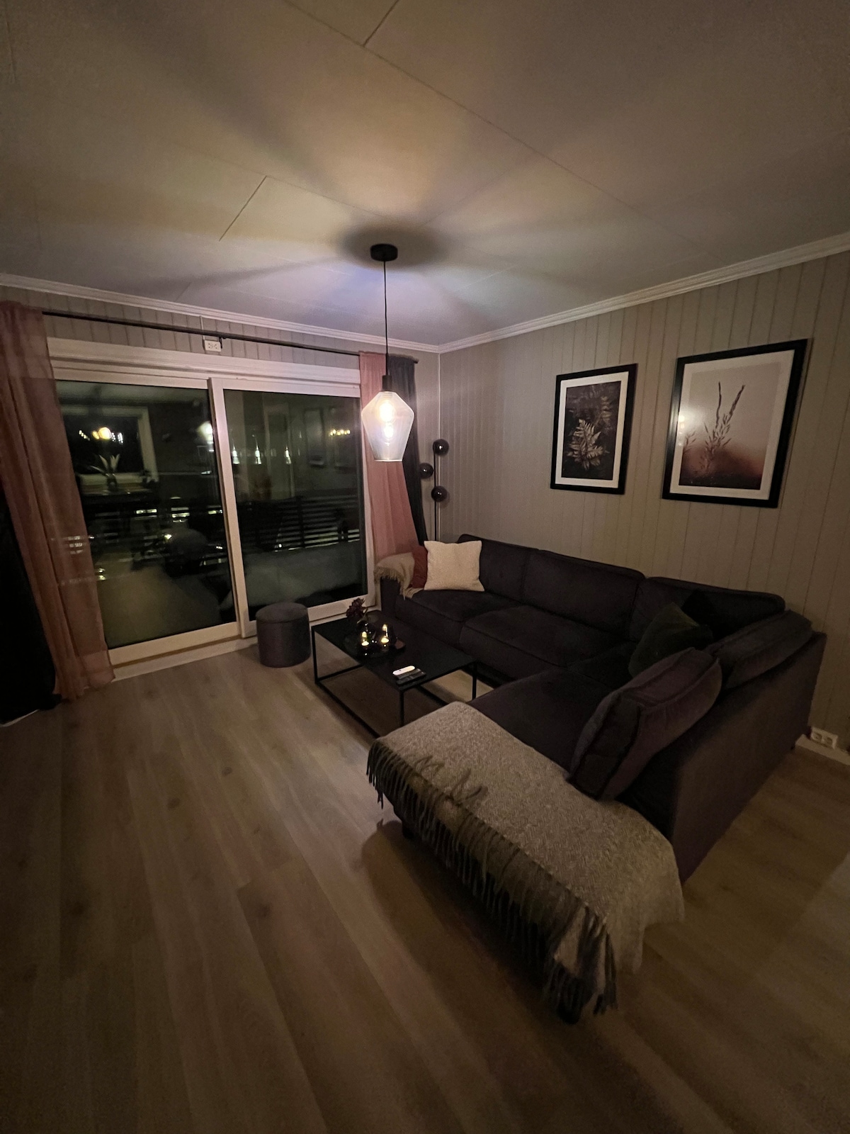 Alojamento com três quartos numa localização central. A 4 minutos a pé do parque público, que oferece comodidades como disc golf e trilhos para caminhadas. A 15 minutos a pé do centro da cidade de Harstad. Grande terraço com bom sol da manhã. O quarto individual é arrendado a longo prazo a um estudante simpático, tranquilo e limpo.