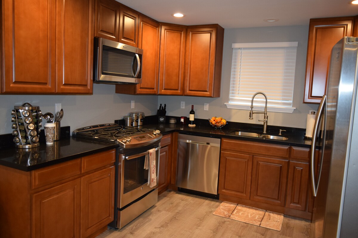The open spaces and white fixtures of this home are elevated by soaring ten-foot ceilings, hardwood floors, chic photography, and cute potted plants. Head out to the private yard for a cookout and enjoy basking in the sun and fresh air, then kick back on the oversized sectional and enjoy the 4K smart TV (WIth Netflix). At the end of the day, rest and relax in peace and comfort. The hotel quality bedding, towels, and all surfaces have been meticulously cleaned to the highest standard prior to your arrival. ★The Guest House★ This home was built in 2017 and you'll feel like you're in a modern luxury condo with soaring ten foot ceilings, open floor plan, and fully stocked modern kitchen. You'll have total privacy and security, as the house is totally detached and situated at the opposed end of our property - It even has its own private yard! ★Two Bedrooms★ Both bedrooms are perfect for resting and recharging with hotel quality mattresses, bedding and linens, freshly cleaned before your arrival. You'll have plenty of room to unpack and make yourself at home with dressers and plenty of closet space! Both rooms have queen size beds! For groups needing more sleeping arrangements, you'll have an amazing sectional in the living room and access to a queen size Air Mattress and extra linens. ★The Kitchen★ If you like to enjoy home cooked meals while you're traveling you will LOVE staying here. The open concept kitchen has quartz counter tops, brand new appliances (including gas range), and is fully stocked with all the usual cooking equipment. Need something you don't see? Just ask and we'll bring it over if we have it! ★The Living Room★ You will have no problem relaxing and making yourself at home in the open concept living room. Kick back on the SUPER comfy over sized sectional and watch your favorite movie or show on the 60' 4K TV with cable, streaming Netflix, Amazon Prime, and of course high speed WiFi. When you've had enough screen time, you can dive into the stash of board games! ★Private Yard★ Just walk out the back of the unit and you'll be on your own private patio overlooking your own private yard! It's equipped with everything you need for a cookout! ★Bathroom and Laundry★ The modern bathroom is fully stocked with toiletries including shampoo, conditioner, body wash, and hair dryer! There is a washer and dryer with complimentary detergent for your convenience. The entire house is all yours! In addition, there is a private yard enclosed with fences for you to enjoy! The house shares a driveway with another unit, but there is a dedicated parking space and unlimited street parking because its a totally residential neighborhood! We are happy to help with anything you need, and we can stop by and help with any questions you have about the property! However, we're also happy to give you total privacy during your stay! The home is in a quiet and friendly residential neighborhood with a Safeway grocery store less than a mile away. Spend the day at the expansive retail district just down the hill, or hop on the Seatac light rail to easily reach downtown Seattle. For those needing access to the airport and Seatac convention centers, the home is conveniently situated less than a mile away! If you have access to a car, you'll love how easy it is go get around from this guest house! You can hop on I-5 or I-99 and get into Seattle or Tacoma in 15-20 minutes. If you don't want to deal with Seattle traffic or parking, you can park at the Tukwila light rail station and glide into Seattle in about 30 minutes! If you don't have a car, you'll also have plenty of options to get around! The Seatac lightrail station is just over a half mile away and is an easy walk. There is also a bus line (156) about a 3 block walk away that picks up every 15 minutes. Getting to and from the airport is incredibly easy (walkable, or a 5 minute taxi/ride share). Ride shares are constantly available within just a few minutes, and are a great way to get around! In addition to Seattle, there is a bustling shopping and dining district just down the hill called Southcenter. It has TONS of options for dining, movie theatres, shopping, IKEA, and one of the largest malls in the region. Southcenter is a 5-10 minute drive away! The house is situated in the back of our property and you access it by going around the main house on the west side (right of the main house). The dedicated parking spot is marked with a welcome sign and is on the right side of the driveway. There is a wide swinging gate that opens up directly to the front steps of your Airbnb!
