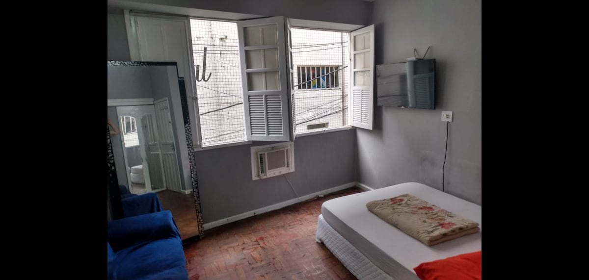 Confortável flat para 4 pessoas, possível até 5 pessoas (cama de casal + 2 sofás cama). 1 banheiro, cozinha com cafeteira, microondas, panela, liquidificador e uma boca de fogāo eletrico. Ideal para famílias. Possui utensílios basicos de cozinha (talheres, pratos, copos) e roupa de cama, sendo necessária roupa de cama extra caso seja mais de um casal. Prédio possui serviços de: água (filtro), gelo, TV a cabo e limpeza do apto (2x por semana, normalmente segundas e quintas)