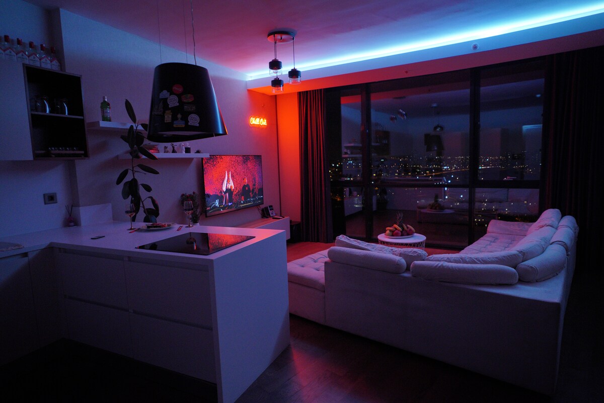 Espero que esteja atento ao volume e respeite os nossos vizinhos. Por favor, grupos grandes não são aceites Pode ver a vista de Ancara a partir da sala de estar e do quarto com conceito de vidro completo no nosso apartamento localizado no 40º andar Há uma televisão de ecrã gigante. Pode ajustar o ambiente que deseja com luzes de néon e luzes LED. Há uma instalação social no local, pode beneficiar de piscina interior, fitness, squash, banho turco , serviços de sauna. Mercearia , cabeleireiro, monopólio , limpeza a seco, etc.