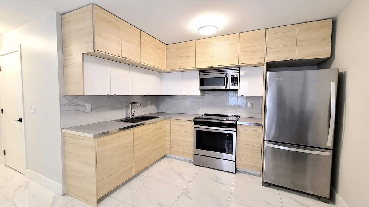Suite preparada para trabalho · Casa de banho privada · Check-in autónomo rápido Bem-vindo ao seu próprio quarto com cama queen e casa de banho privativa. Não há espaços partilhados. Entrada separada no jardim das traseiras. Secretária da estação de trabalho. Comodidades básicas da kitchenette: frigorífico, micro-ondas, pratos básicos, chaleira. (sem cozinha) Espaço simples. Tudo o que precisa para uma estadia repousante na bela Vancouver.