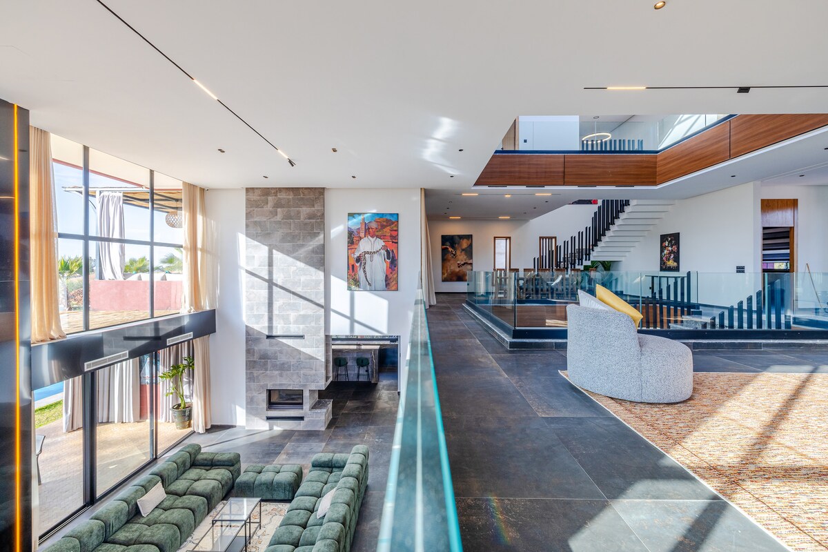 Privacidade total até 22 pessoas. Moradia de luxo sem vizinhos, com grande piscina infinita aquecida e jacuzzi. 6 grandes suites com ar condicionado e aquecimento com TV, minibar, café, etc. Ideal para estadias e pequenos eventos: com dançarinos orientais, músicos, cuspidor de fogo e +. Serviços premium: limpeza diária, empregados de mesa, mordomo. Bilhar, mini-futebol, basquetebol, ping-pong... Treinador de desporto. Ótima comida marroquina. Transporte gratuito do aeroporto (1 voo). Todos os transportes 24/7
