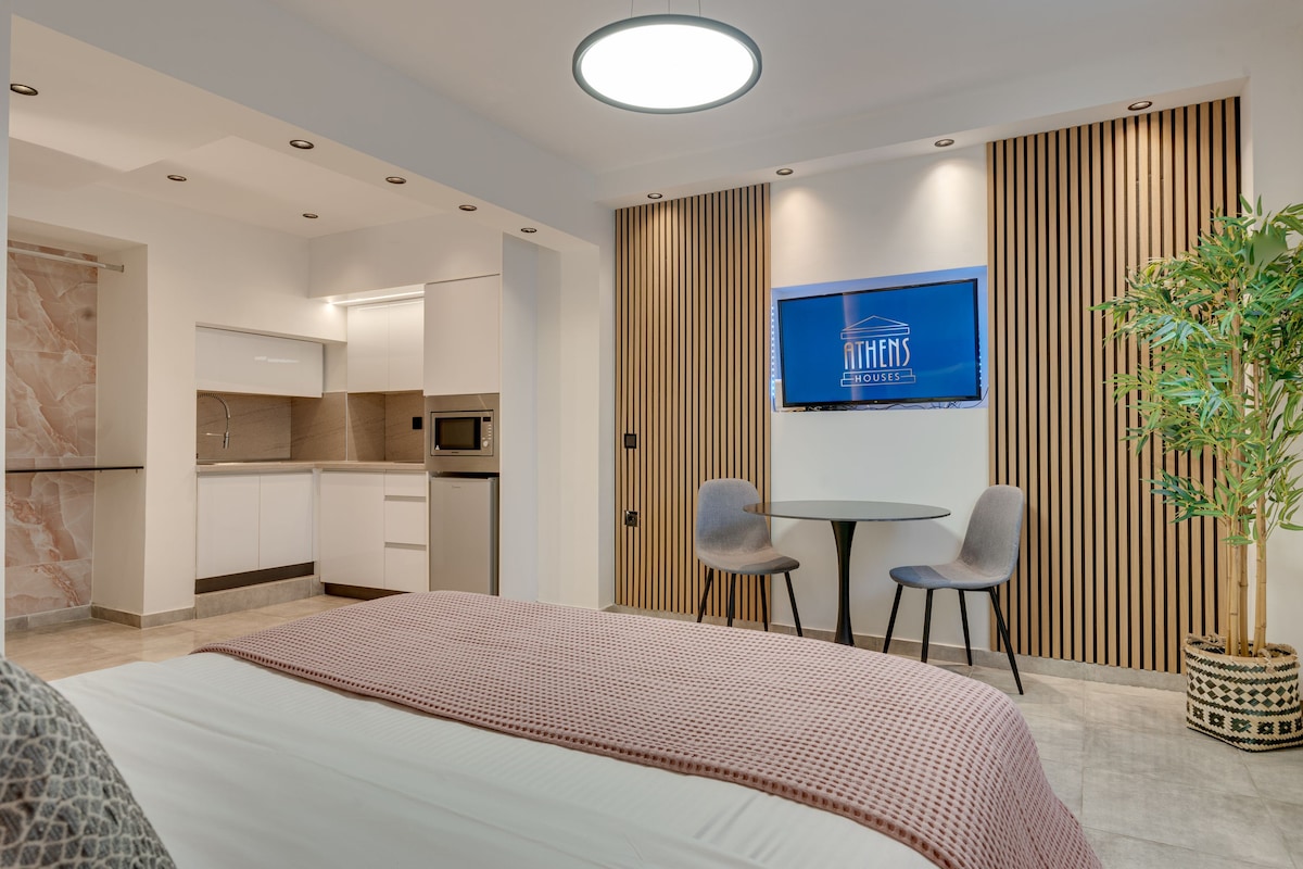 Estúdio urbano de design minimalista na área bem conhecida de Ano Petralona, em Atenas, perto da colina Filopappou. Totalmente renovado em 2022 com um grande gosto de estética e minimalismo. O nosso espaço está localizado a poucos metros de distância da estação de metro de Ano Petralona. Desfrute da sua estadia em Atenas no nosso apartamento estúdio totalmente renovado e moderno!